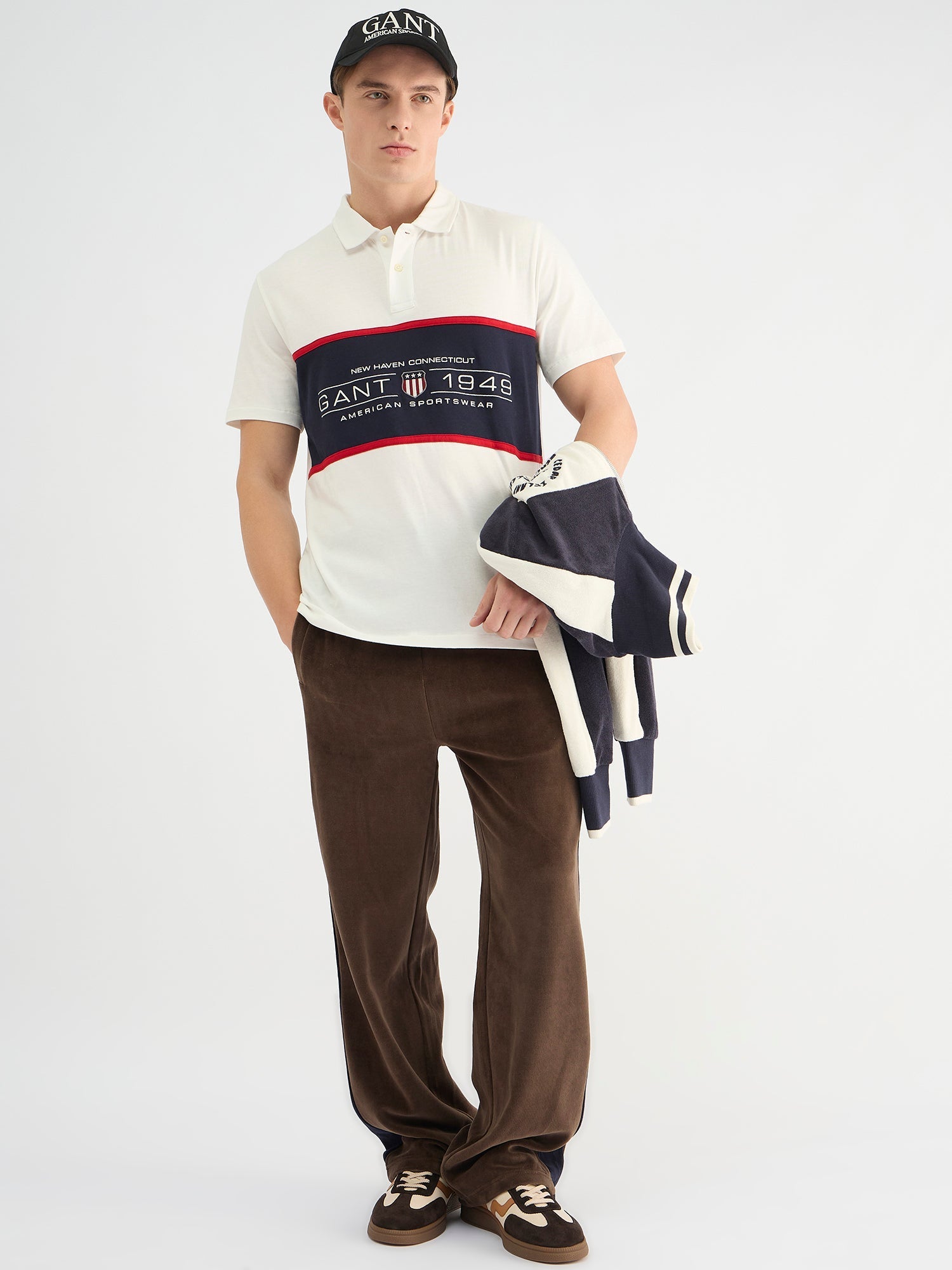 A crisp white canvas for your style. This classic polo features a bold colorblock design, adding a modern edge to the timeless silhouette. Crafted from pure cotton for breathable comfort, it's the perfect blend of sophistication and casual cool. The regular fit ensures a flattering and comfortable wear.