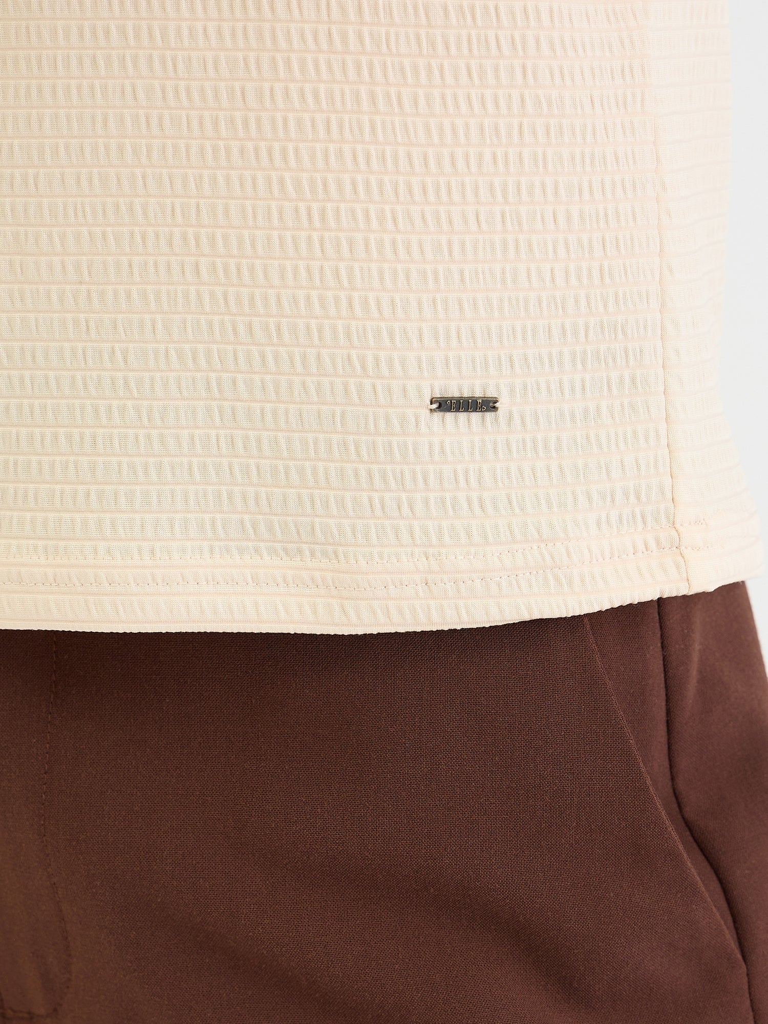 Embrace effortless style with this beige textured t-shirt. Crafted from a soft polyester blend, this fitted tee features a comfortable crew neck and short sleeves for a flattering and versatile look. The textured pattern adds a touch of dimension, while the slip-on closure ensures easy wear. Perfect for casual outings, weekend adventures, or layering under jackets and cardigans.