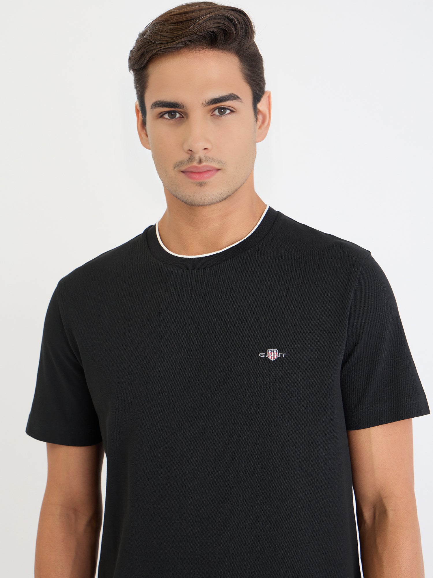 This classic black t-shirt is a wardrobe essential. Crafted from soft, breathable cotton, it offers a comfortable regular fit. The crew neck and short sleeves provide a timeless look, while the solid pattern ensures versatility. Simply slip it on for a casual and effortless style.