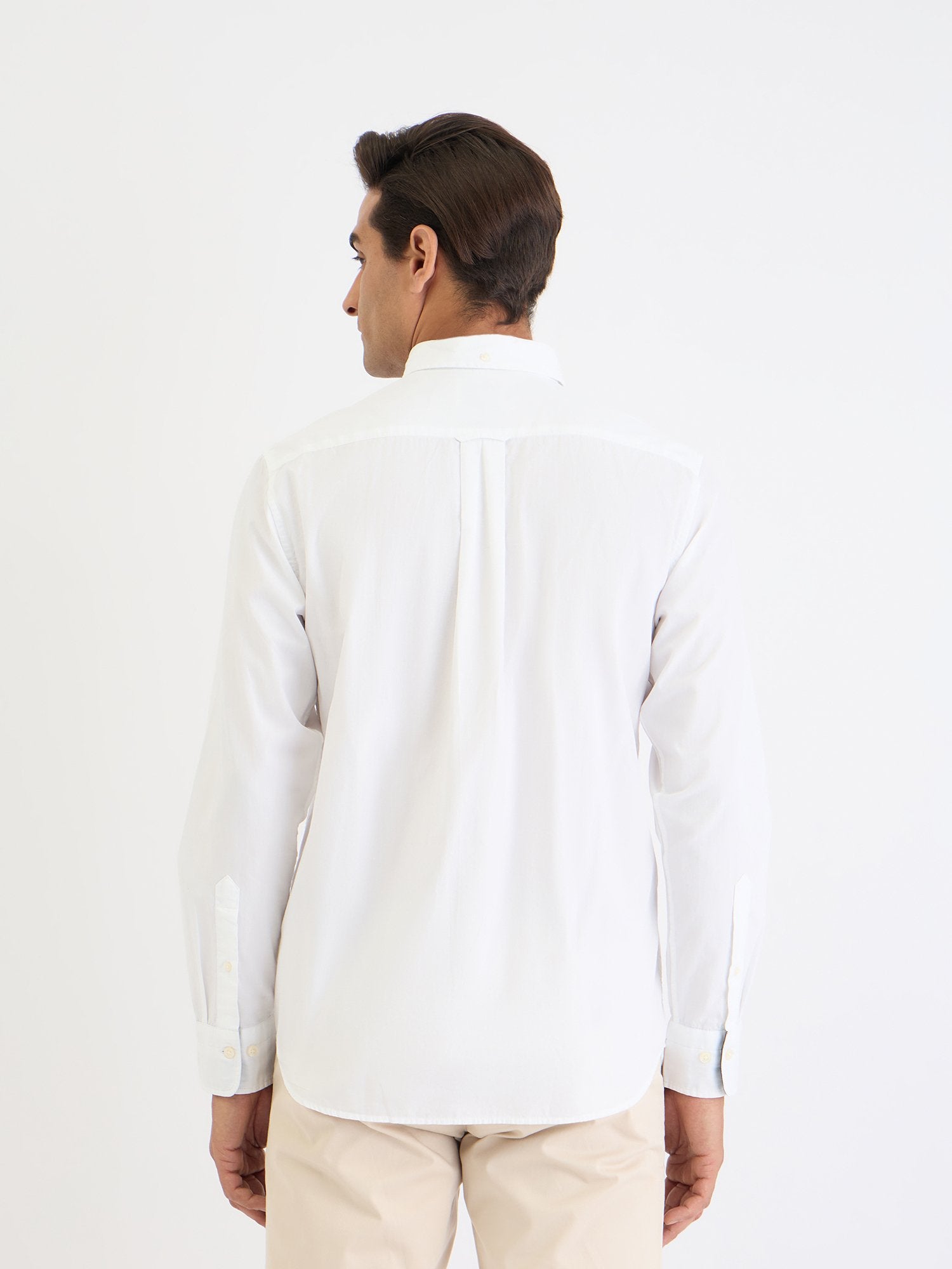 Elevate your everyday style with this classic white shirt. Crafted from soft, breathable cotton, it features a timeless button-down collar, full sleeves, and a regular fit for comfortable all-day wear. The printed pattern adds a touch of personality, while the button closure ensures a secure and polished look. Perfect for both casual and smart casual occasions, this versatile shirt is a must-have for any man's wardrobe.