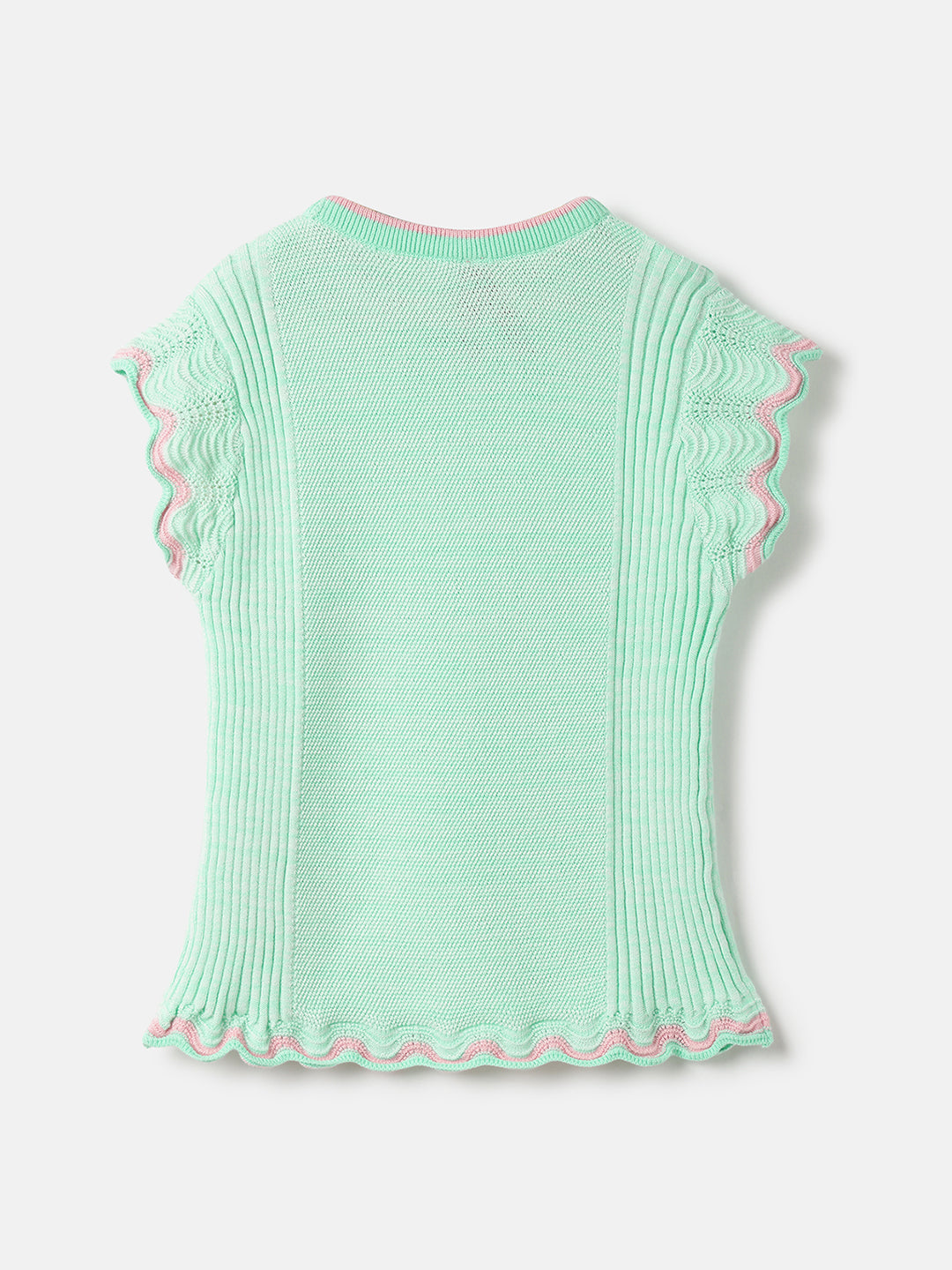 Discover the perfect blend of style and comfort with our green knitted top for girls. Crafted from soft cotton fabric, this top features a regular fit that ensures ease of movement. The vibrant colorful mélange textured flatknit adds a playful touch, while the cap sleeves and round neck provide a classic silhouette. Designed with a pull-on closure, it's easy to wear and perfect for any occasion. The stretchable material offers flexibility, making it ideal for active days or casual outings. Elevate your wardrobe with this versatile piece that combines fashion-forward design with everyday practicality.