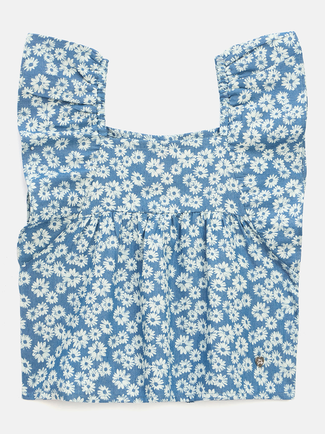 Discover the perfect blend of style and comfort with our blue floral print top for girls. Crafted from pure cotton, this top ensures breathability and softness for all-day wear. The flared fit adds a touch of elegance, making it ideal for both casual outings and special occasions. Featuring a charming all-over floral pattern, it brings a fresh and vibrant look to any wardrobe. The square neck design offers a modern twist, while the pull-on closure ensures easy dressing. Elevate your fashion game with this versatile and chic top.