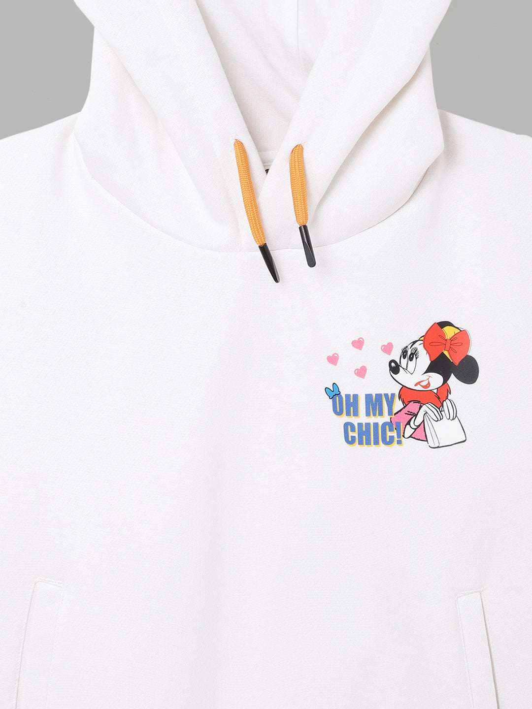 Blue Giraffe Girls White Solid Hooded Full Sleeves Pullover Style Sweatshirt