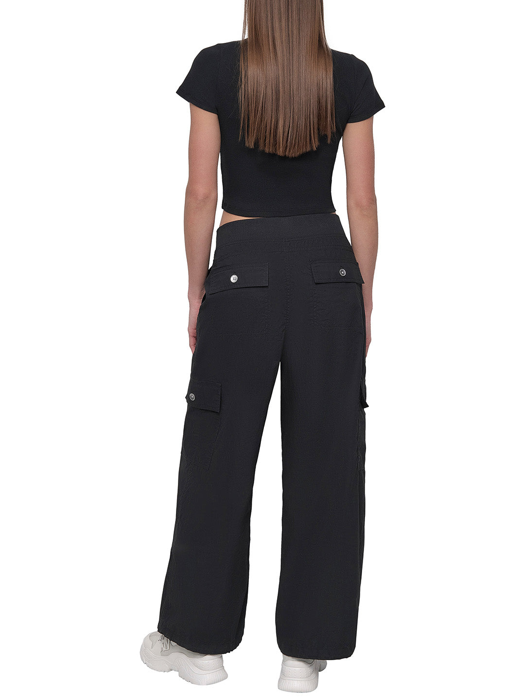 Discover the perfect blend of comfort and style with our oversized black trousers for women. Crafted from pure cotton, these trousers offer a soft and breathable feel, making them ideal for all-day wear. The solid pattern adds a touch of sophistication, while the mid-rise design ensures a flattering fit. Featuring an elasticated waistband closure, these trousers provide ease of movement and a customizable fit. Whether you're dressing up for a night out or keeping it casual, these versatile trousers are a must-have addition to your wardrobe. Embrace effortless elegance with every step you take.