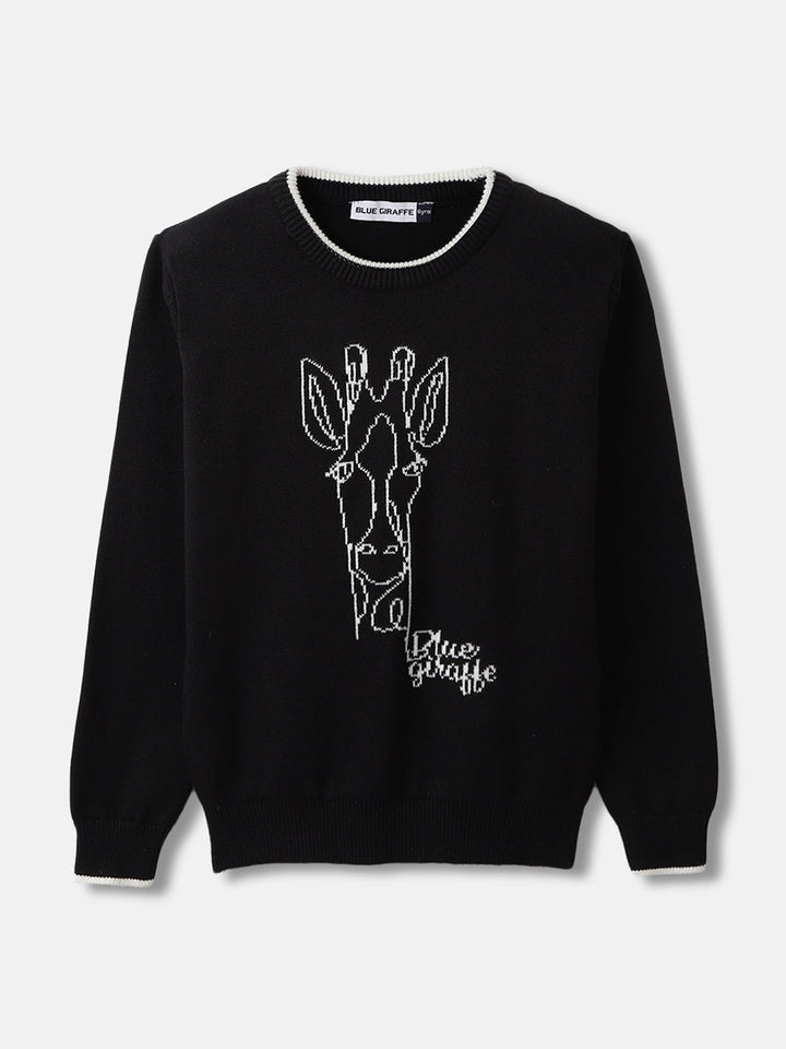 Blue Giraffe Boys Black Self Design Round Neck Full Sleeves Pullover Style Sweater