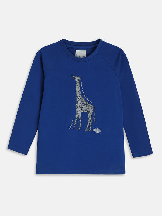 Blue Giraffe Boys Off White Printed Round Neck Full Sleeves Pullover Style Sweater