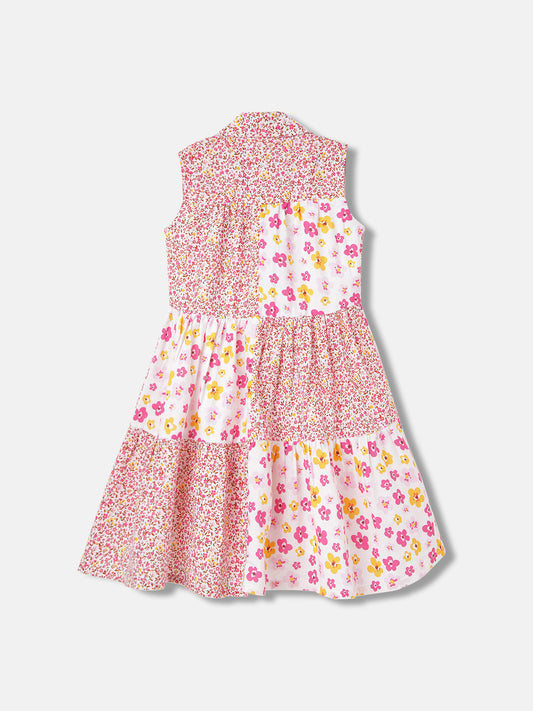 Blue Giraffe Girls Cream Self-Design Round Neck Full Sleeves Cardigan Style Sweater