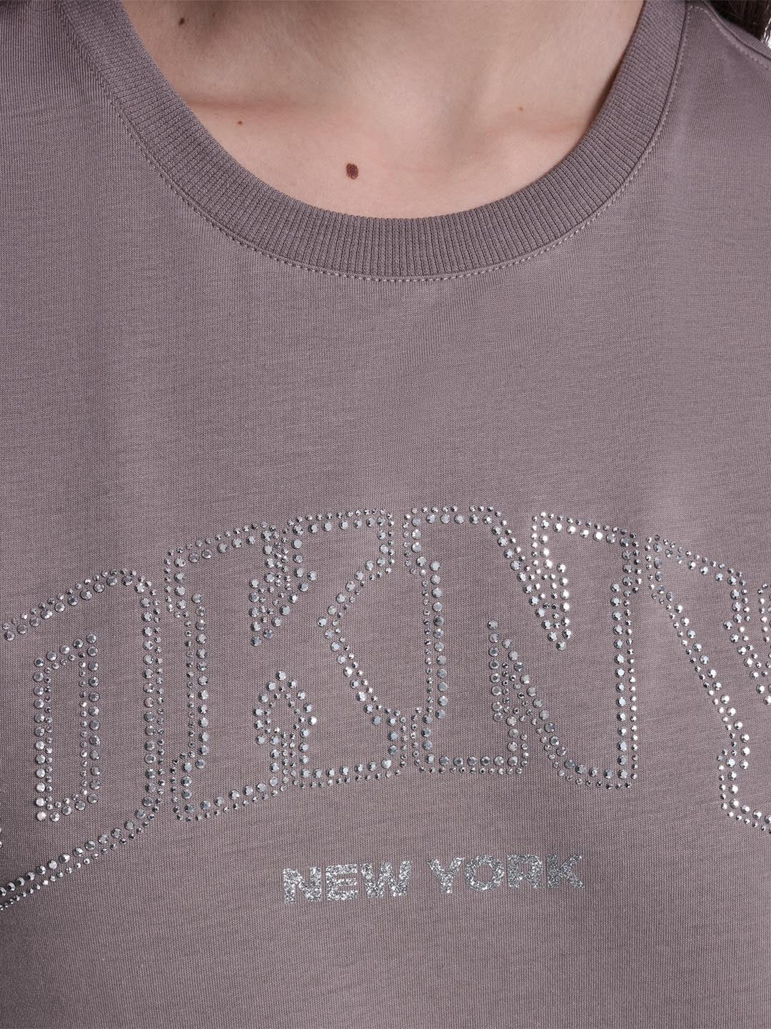 DKNY Women Brown Embellished Round Neck T-Shirt