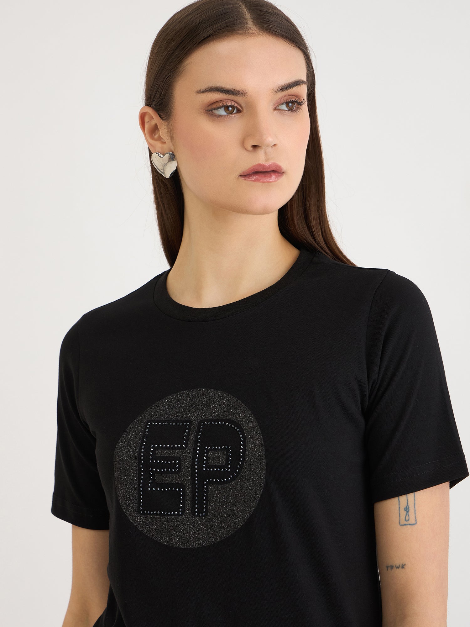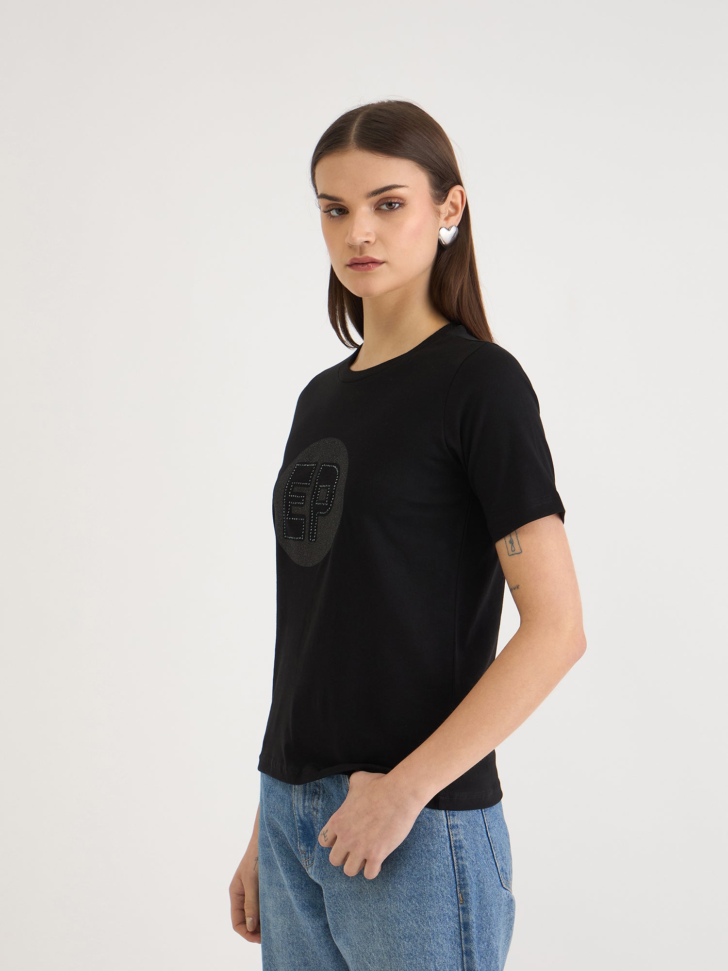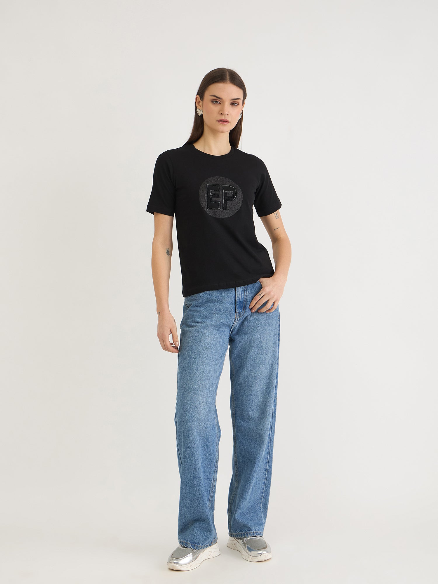 This basic black crew neck t-shirt is a wardrobe essential. Made from pure cotton it is soft and comfortable to wear. The relaxed fit and short sleeves make it perfect for everyday wear. The branding on the chest adds a touch of style. This t-shirt is also stretchable for a perfect fit. Pull on closure makes it easy to wear.