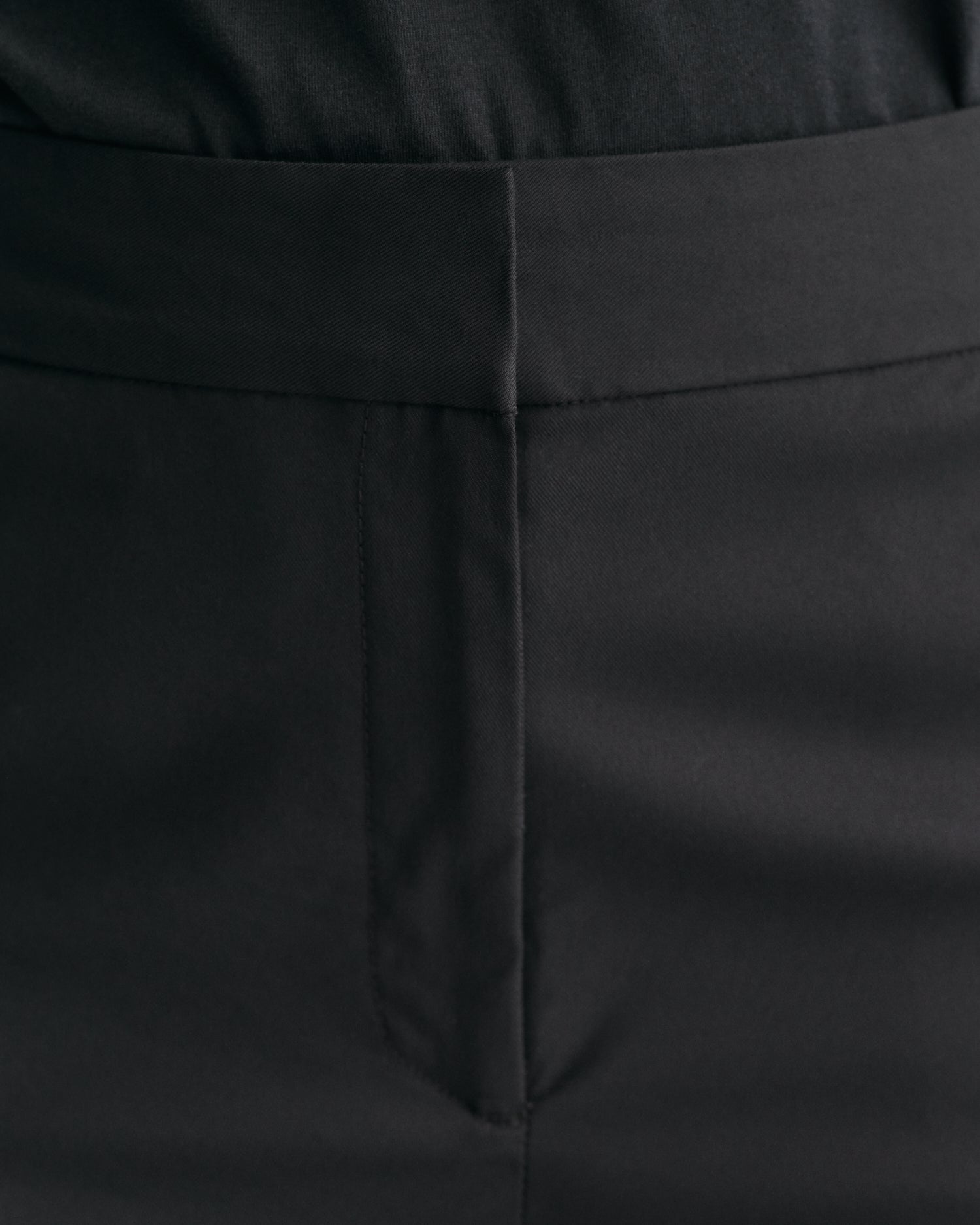Elevate your wardrobe with these sleek black slim-fit trousers, crafted from a luxurious cotton-polyamide blend. Featuring a flattering mid-rise waist and a stylish zip closure, they effortlessly combine comfort and sophistication. Perfect for any occasion, these solid-patterned trousers are a must-have staple for the modern woman seeking timeless elegance.
