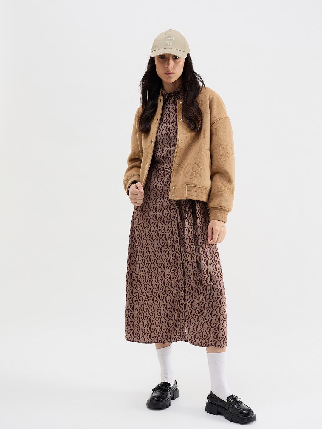 Elevate your wardrobe with this GANT red shirt dress, adorned with an all-over print. Featuring long sleeves, a collar, and button closure, it delivers both sophistication and charm. The belted waist enhances the silhouette, offering a flattering fit. Perfect for casual outings, workdays, or relaxed dinners, this dress seamlessly blends comfort, elegance, and timeless appeal in one versatile piece.