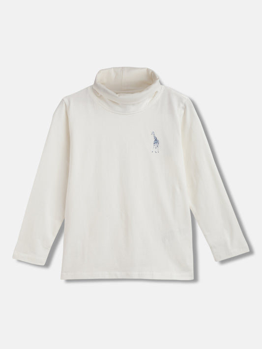 Blue Giraffe Boys Off White Printed Round Neck Full Sleeves Pullover Style Sweater