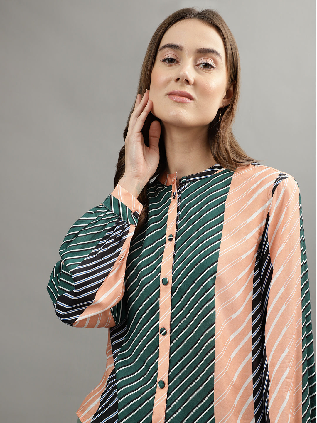 Women Multicolor Striped Spread Collar Full Sleeves Shirt