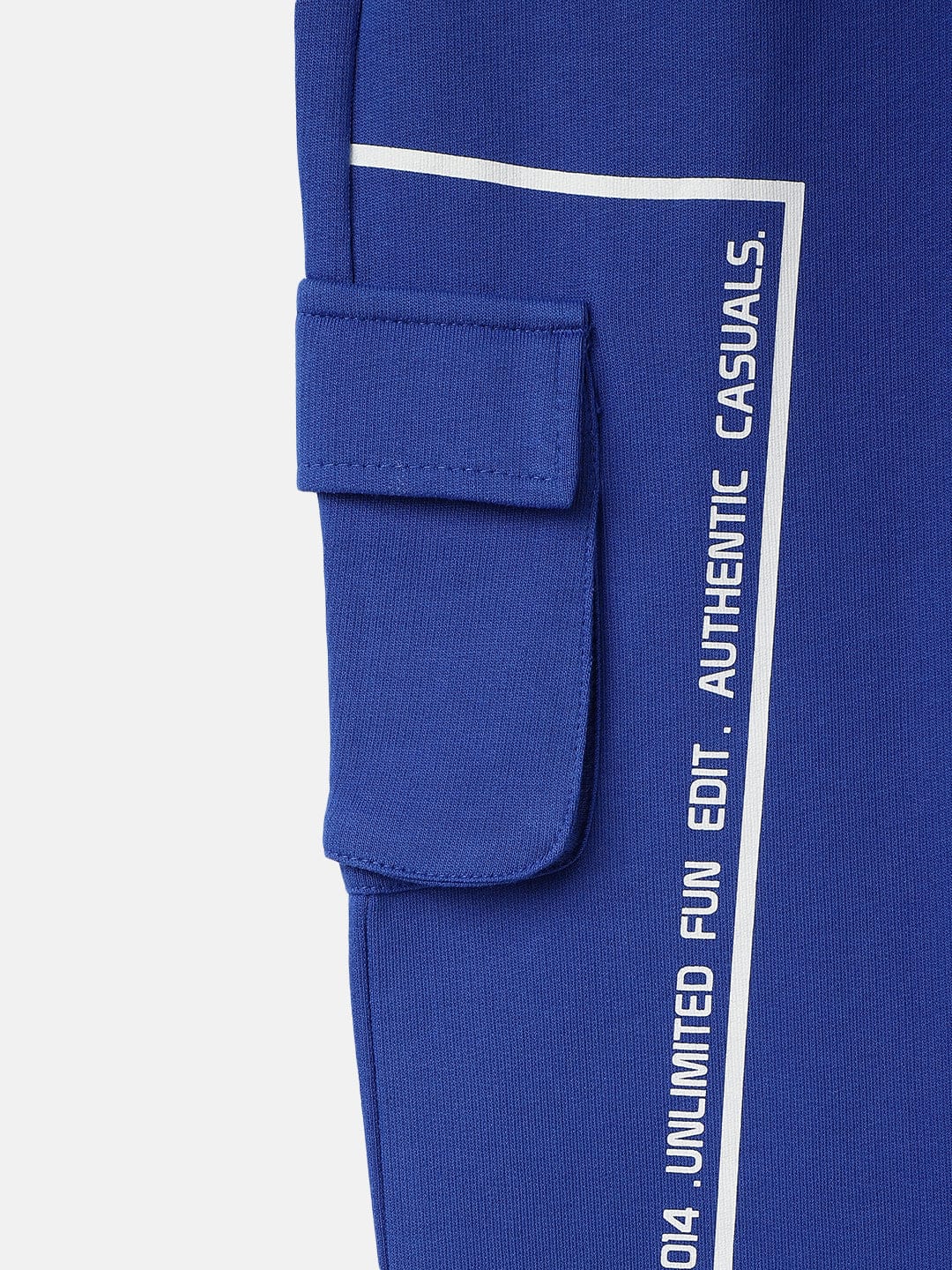Introducing our Cargo Sweatpants for boys in a stylish blue color, designed for comfort and versatility. These sweatpants feature a regular fit with a solid pattern, making them perfect for any casual occasion. The mid-rise design ensures a comfortable wear, while the drawstring closure allows for easy adjustments. Made from high-quality cotton fabric, these pants are soft and breathable. The stretchable material provides added flexibility for active days. A unique placement print adds a touch of style, making these cargo sweatpants a must-have addition to any young wardrobe.