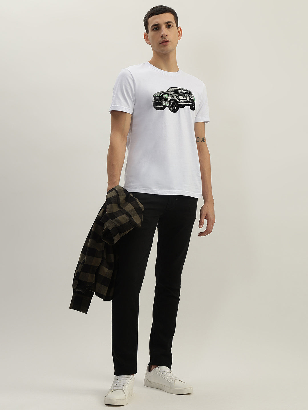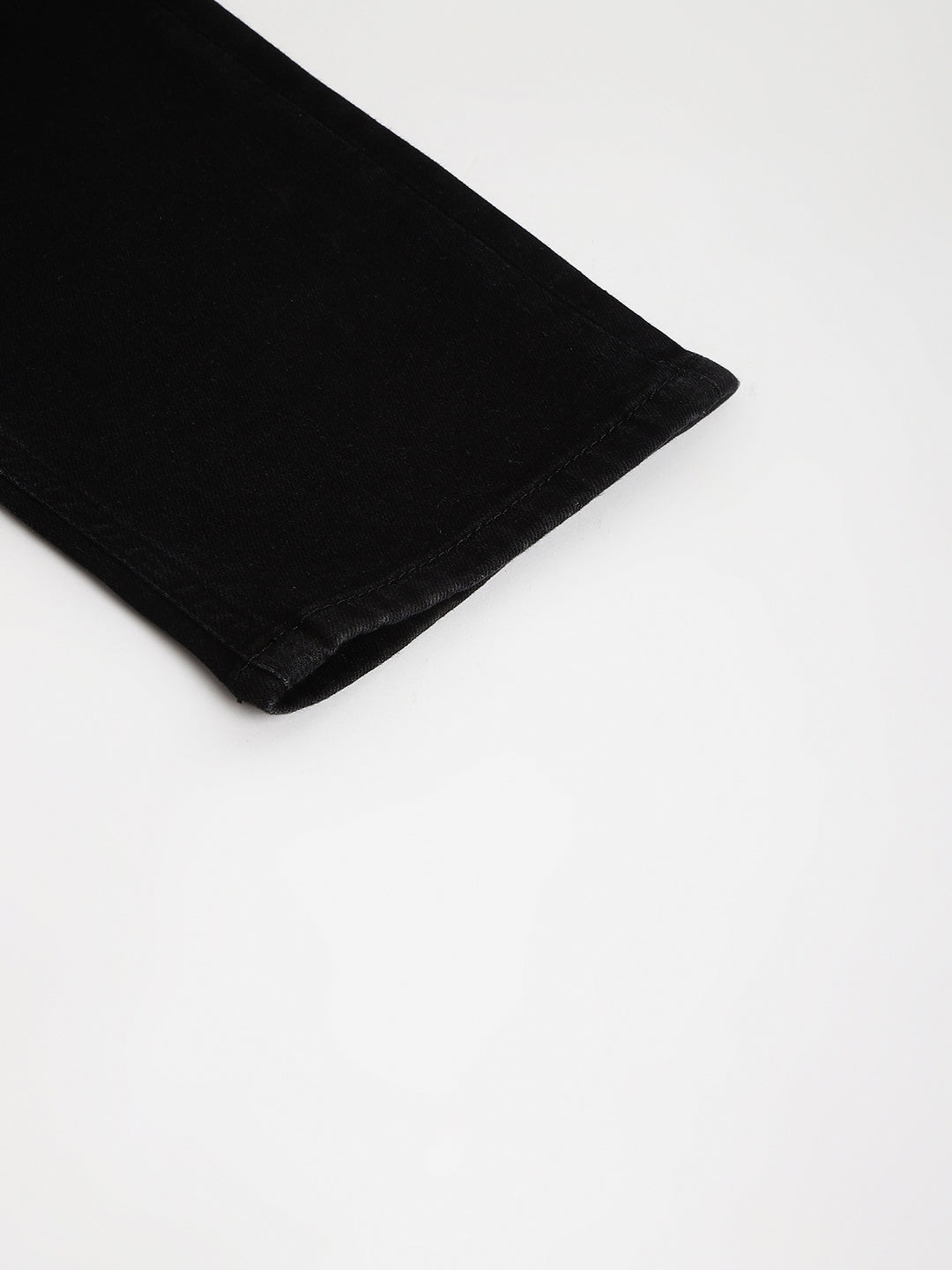 Sleek and stylish, these black tapered jeans offer a modern fit. Crafted from comfortable cotton, they feature a mid-rise waist, button and zip closure, and a solid pattern for a versatile look.
