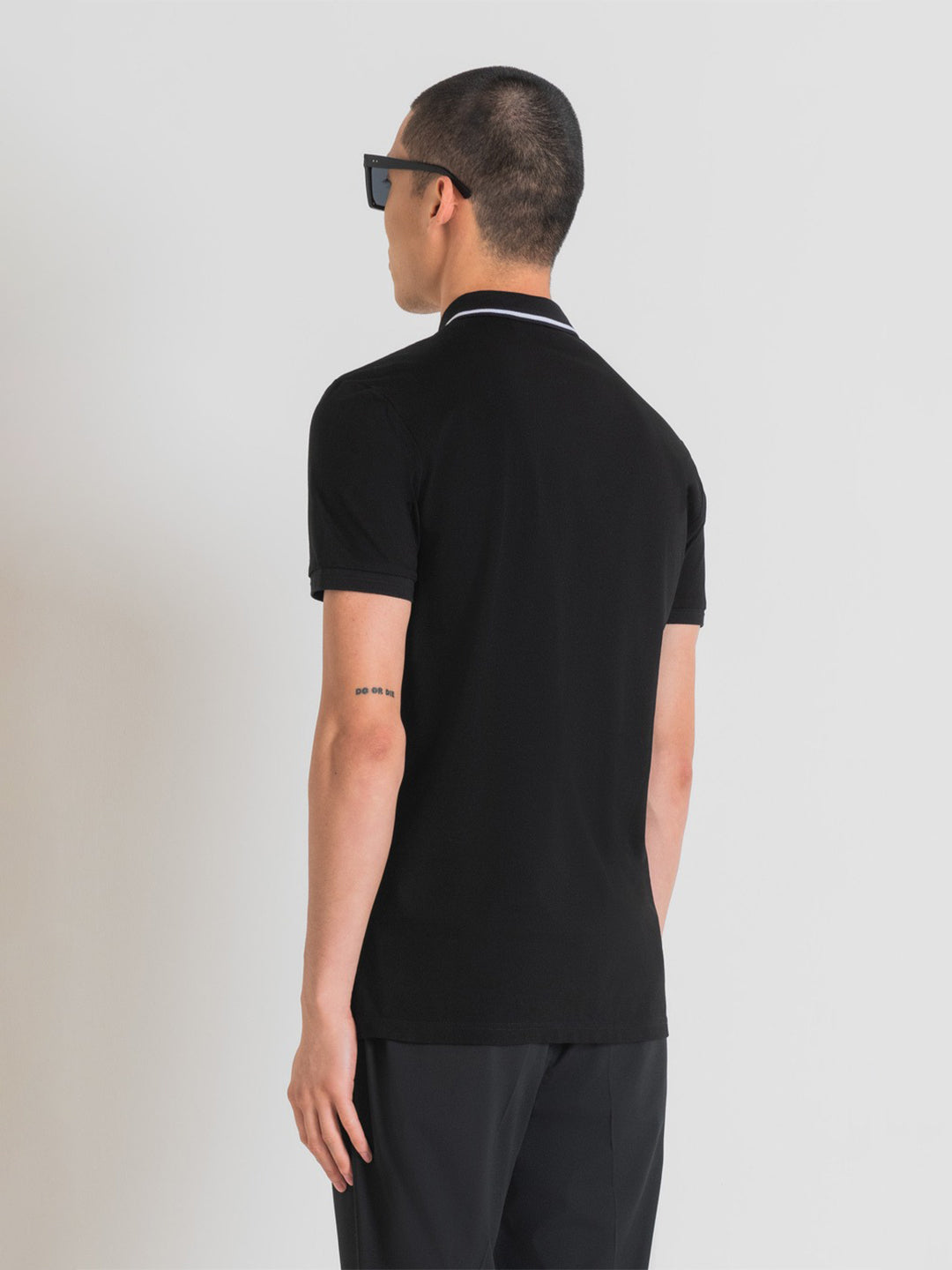 Antony Morato Men Black Solid Collared Short Sleeves Polo Tshirt
