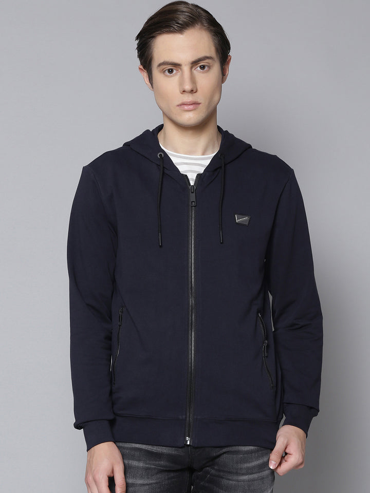 Antony Morato Men Multi-Color Self Design Hooded Full Sleeves Fleece Sweatshirt