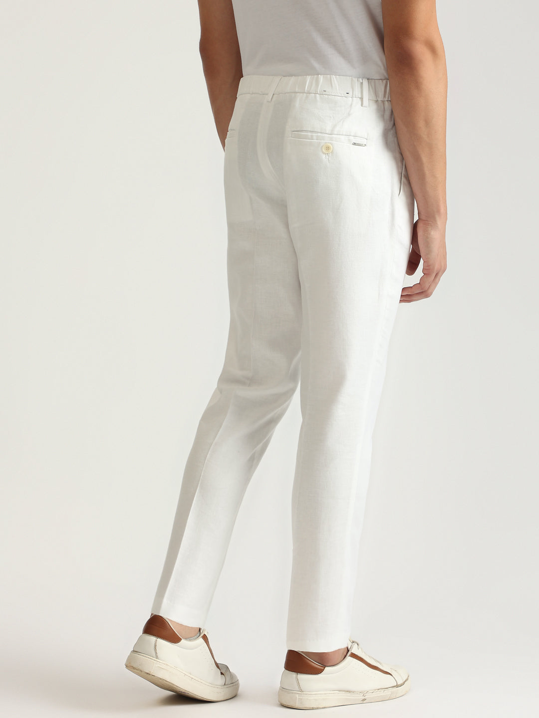 Elevate your summer style with these cream linen blend trousers. Featuring a classic carrot fit, mid-rise waist, and button and zip closure, these trousers offer both comfort and sophistication. The solid pattern and linen blend fabric ensure breathability and a timeless look.