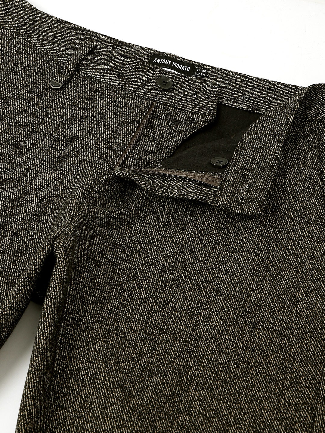 Sleek and sophisticated, these super skinny flat-front trousers in black offer a sharp, modern silhouette. Crafted from a comfortable polyester blend, they feature a mid-rise waist, button and zip closure, and a solid pattern for a timeless look.