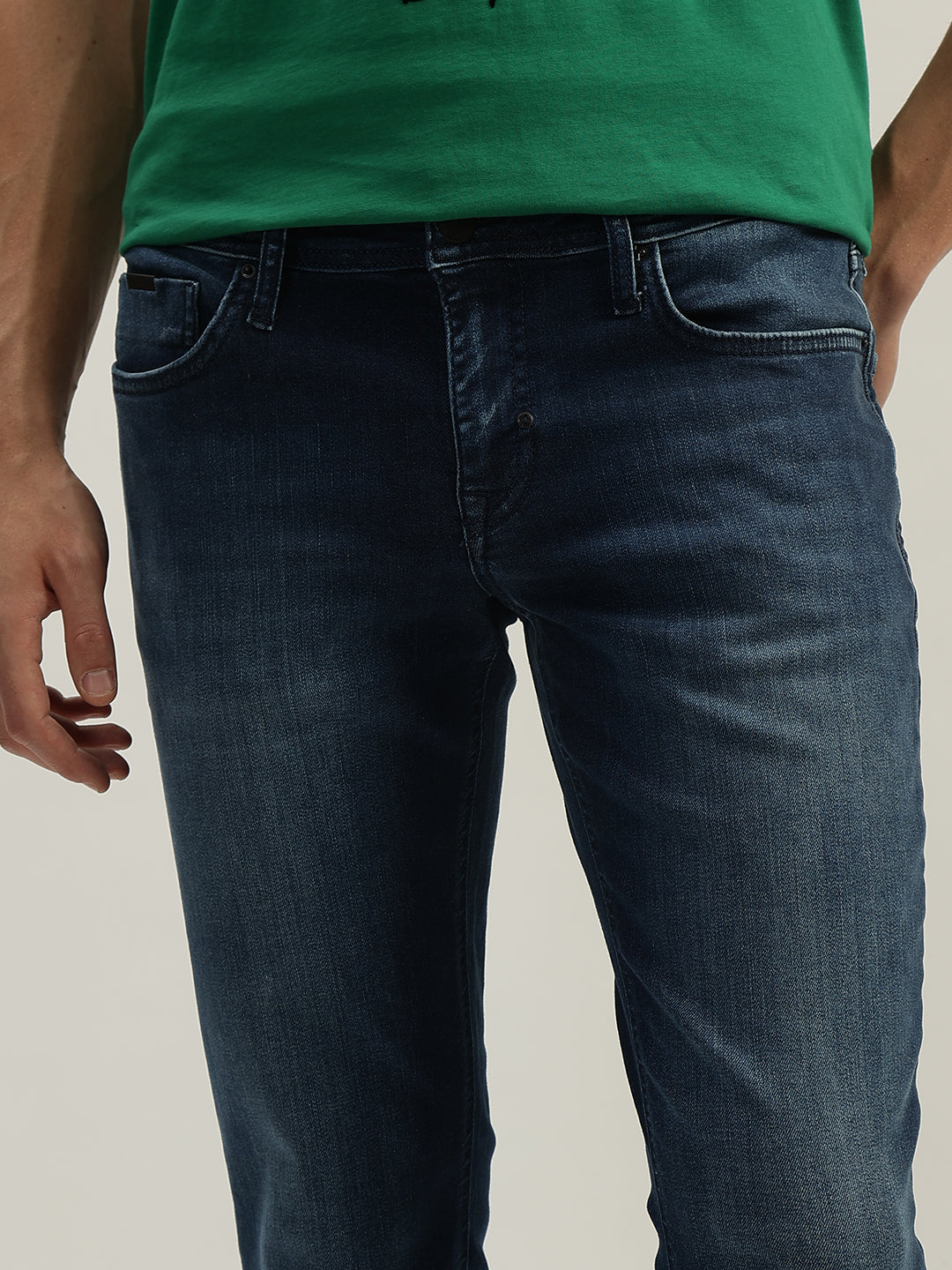 Classic blue jeans with a modern twist. Tapered fit for a sleek silhouette, washed for a vintage feel. Mid-rise, button and zip closure, crafted from comfortable cotton.