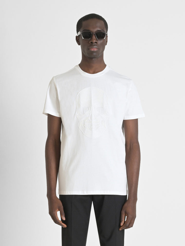 Antony Morato Mens White Round Neck Short Sleeve Embossed Skull Pattern Tshirt