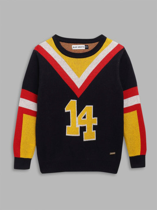 Blue Giraffe Boys Multi-Color Color-Blocked Round Neck Full Sleeves Pullover Style Sweater