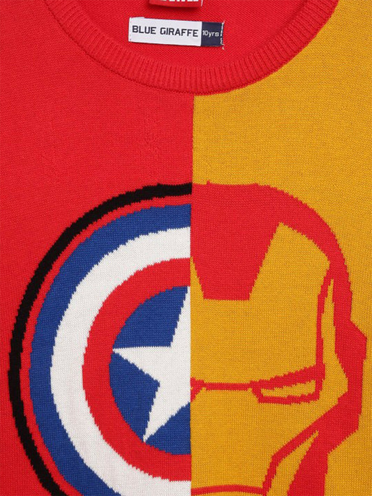 Blue Giraffe Boys Red Color-Blocked Round Neck Full Sleeves Pullover Style Sweater