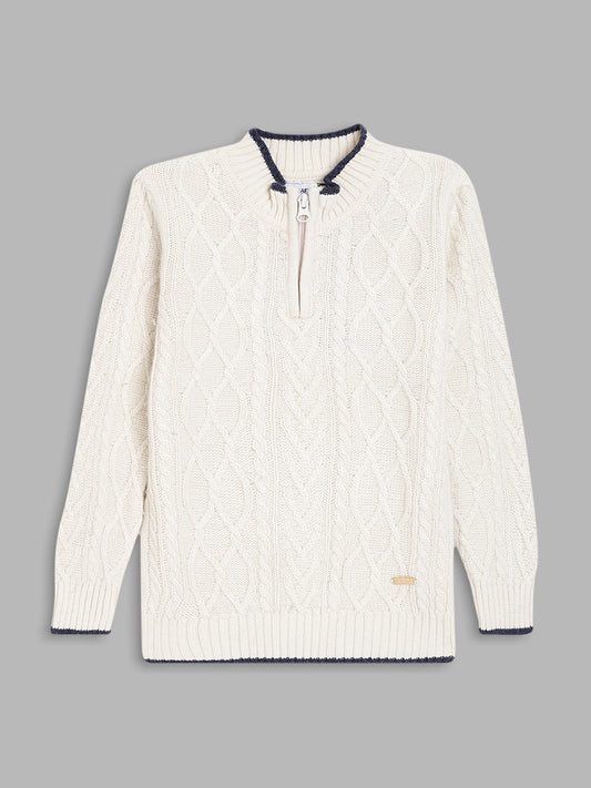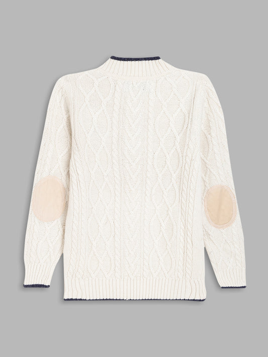 Blue Giraffe Boys Off White Printed Round Neck Full Sleeves Pullover Style Sweater
