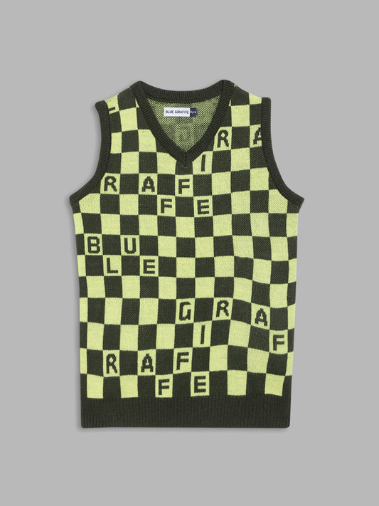 Blue Giraffe Boys Multi-Color Checked Round Neck Full Sleeves Pullover Style Sweater