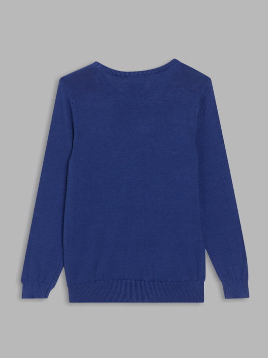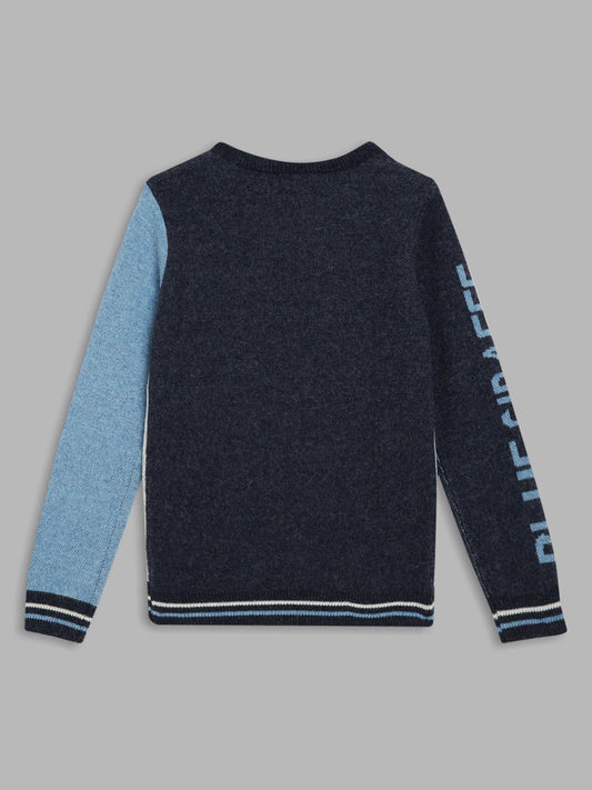 Blue Giraffe Boys Blue Colorblocked Round Neck Full Sleeves Pullover Style Sweater