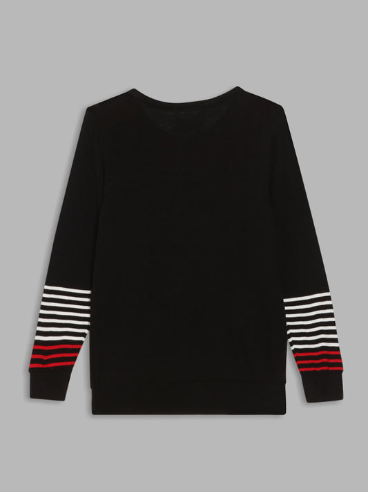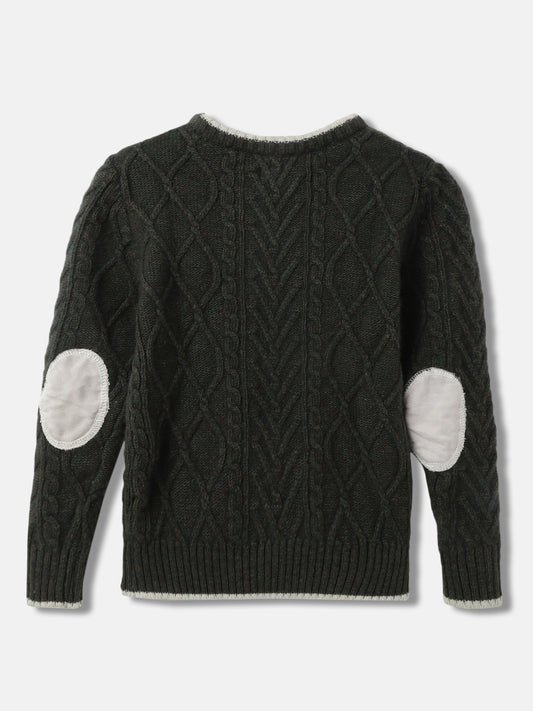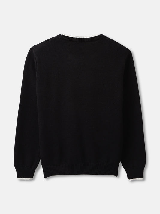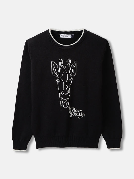 Blue Giraffe Boys Black Self Design Round Neck Full Sleeves Pullover Style Sweater