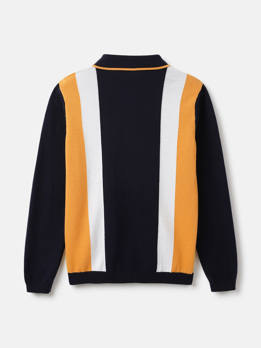 Blue Giraffe Boys Navy Blue Self Design Spread Collar Full Sleeves Pullover Style Sweater