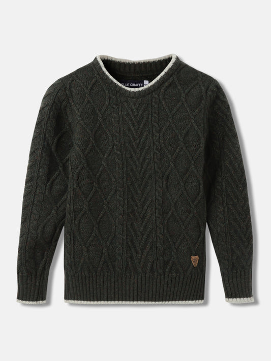 Blue Giraffe Boys Multicolor Self Design Round Neck Full Sleeves Pullover Style Sweater