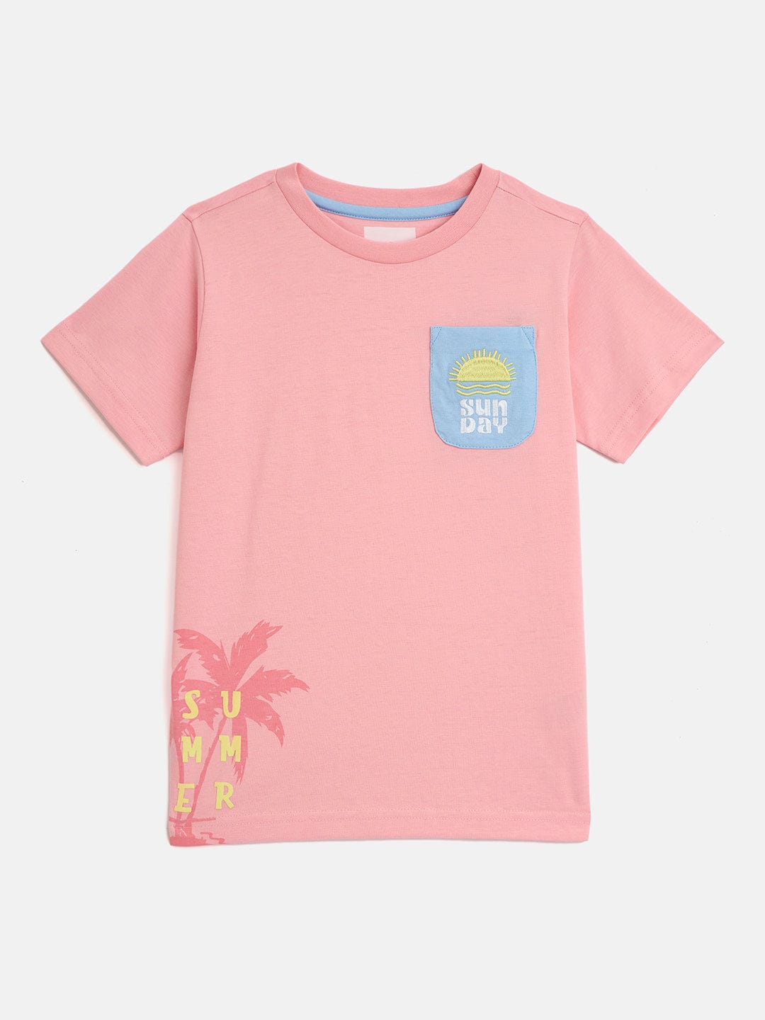 Blue Giraffe Boys Pink Solid Crew Neck Tshirt