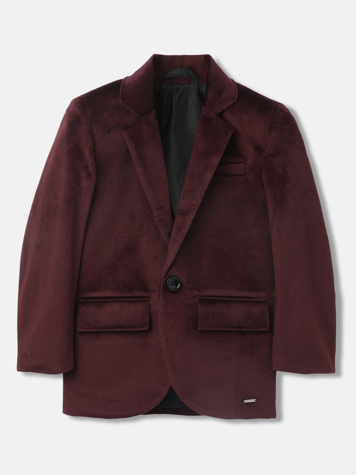 Blue Giraffe Boys Red Solid Notch Lapel Collar Full Sleeves Single Breasted Blazer