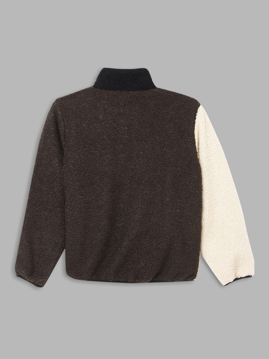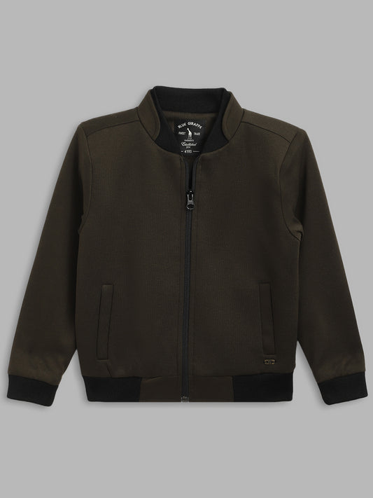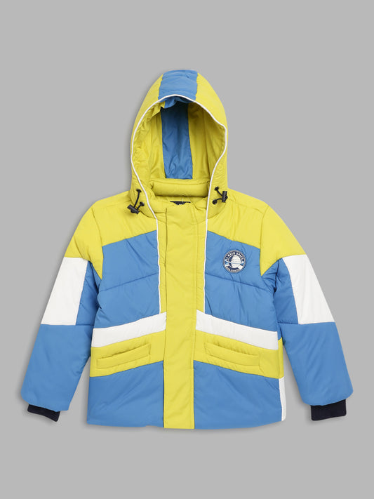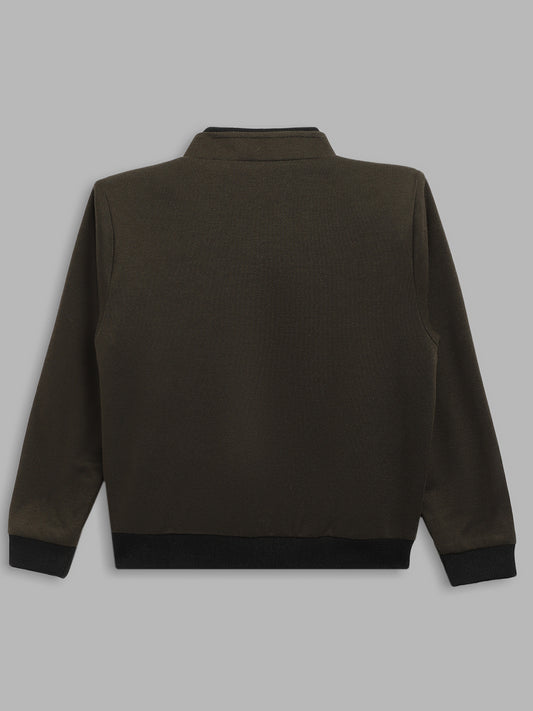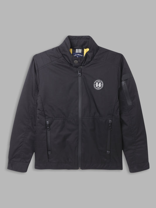 Blue Giraffe Boys Navy Color-Blocked Baseball Collar Full Sleeves Varsity Jacket