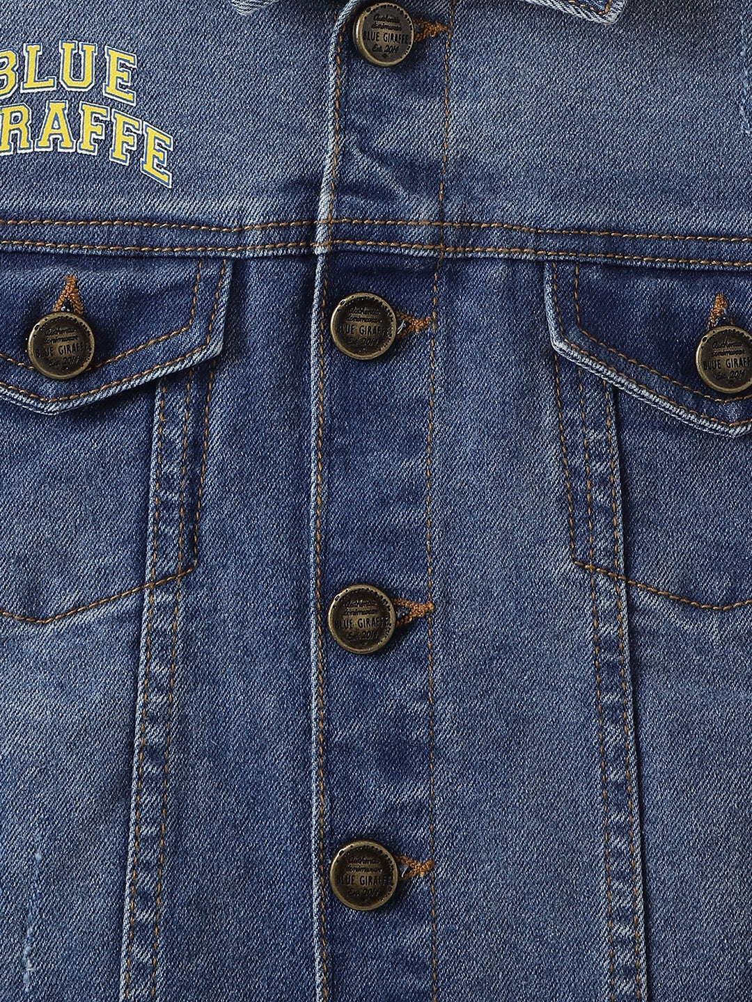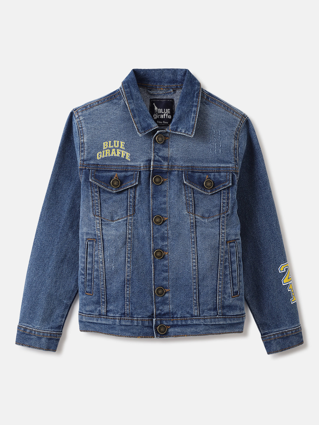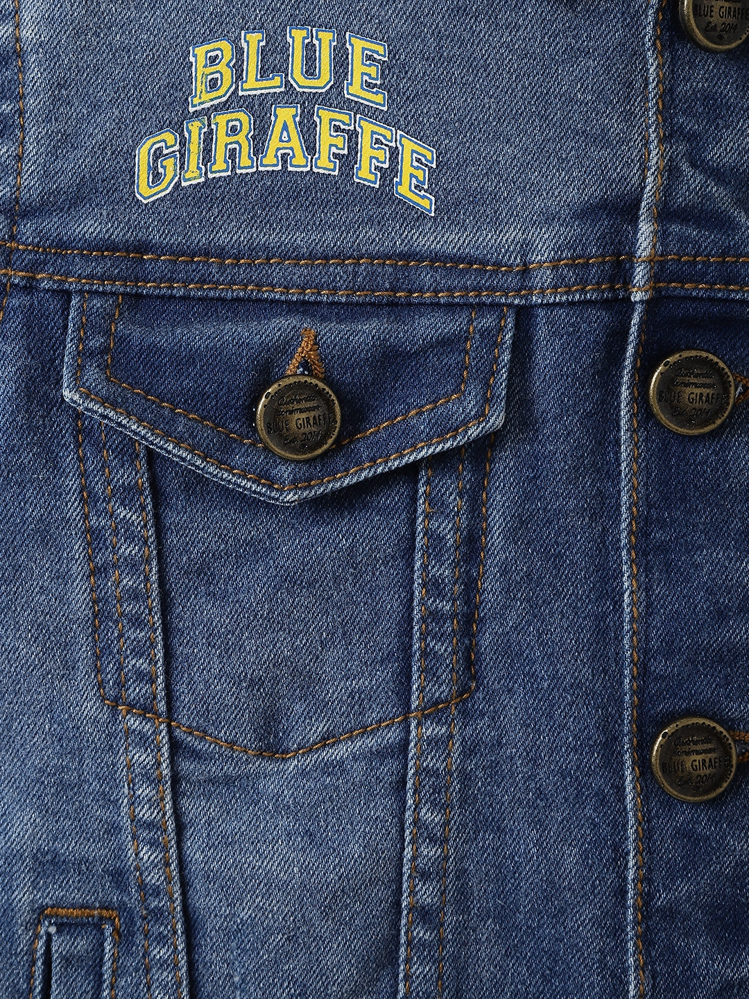 Blue Giraffe Boys Blue Washed Spread Collar Full Sleeves Denim Jacket