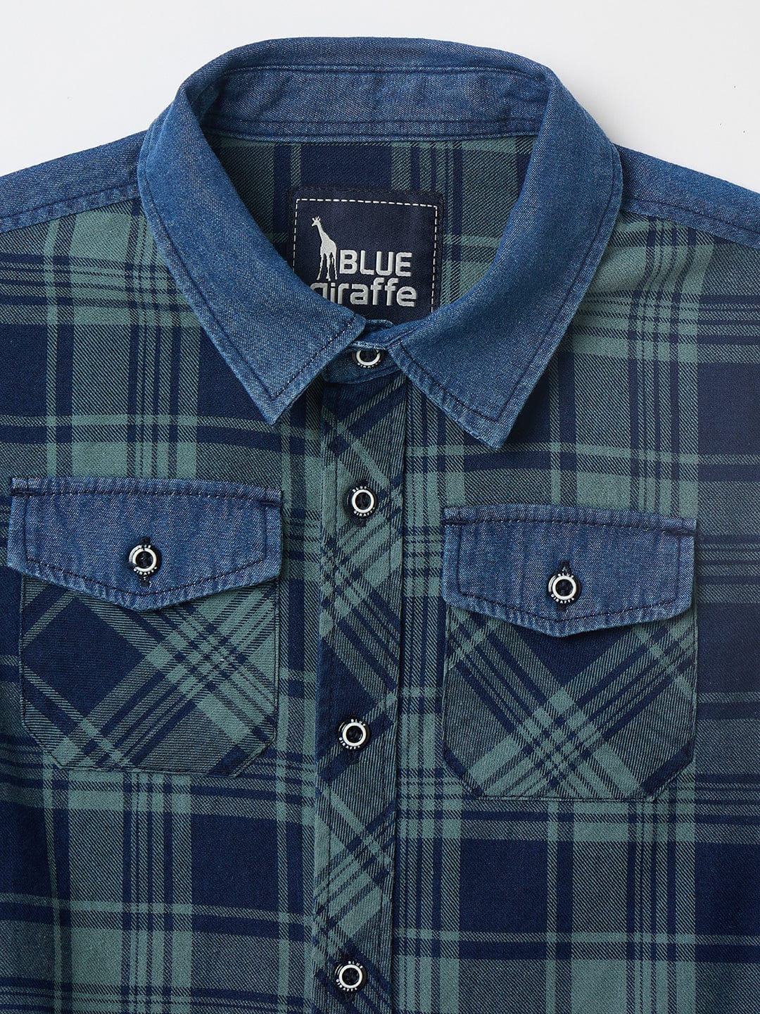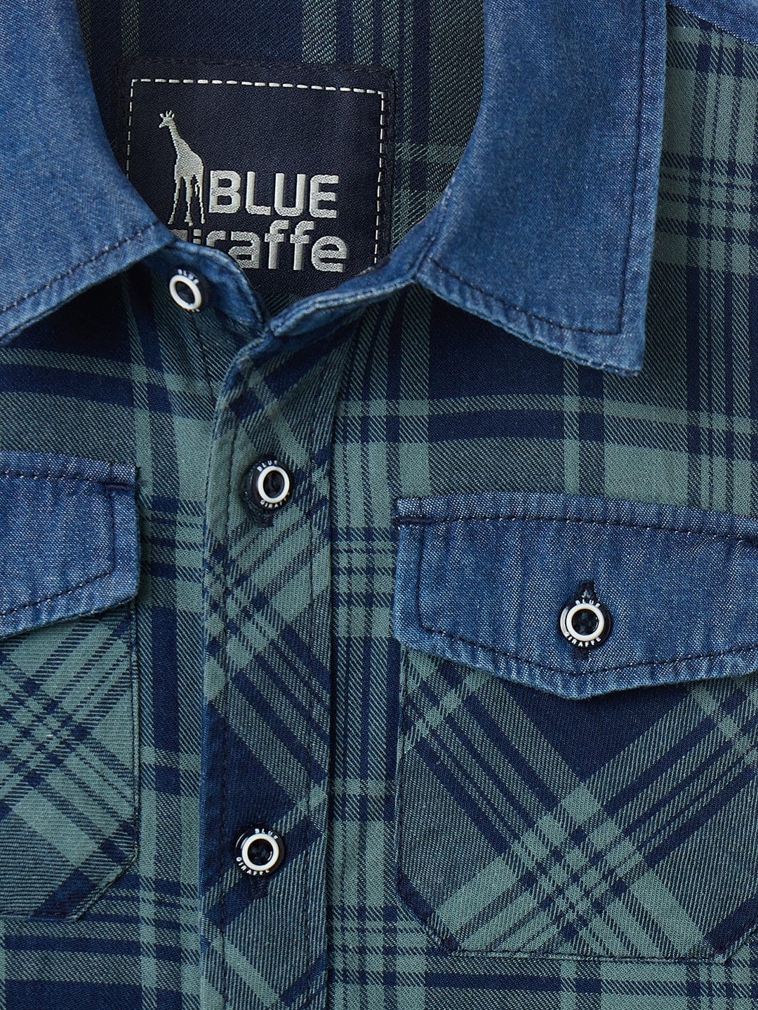 Blue Giraffe Boys Yellow Checks Collar Shirt