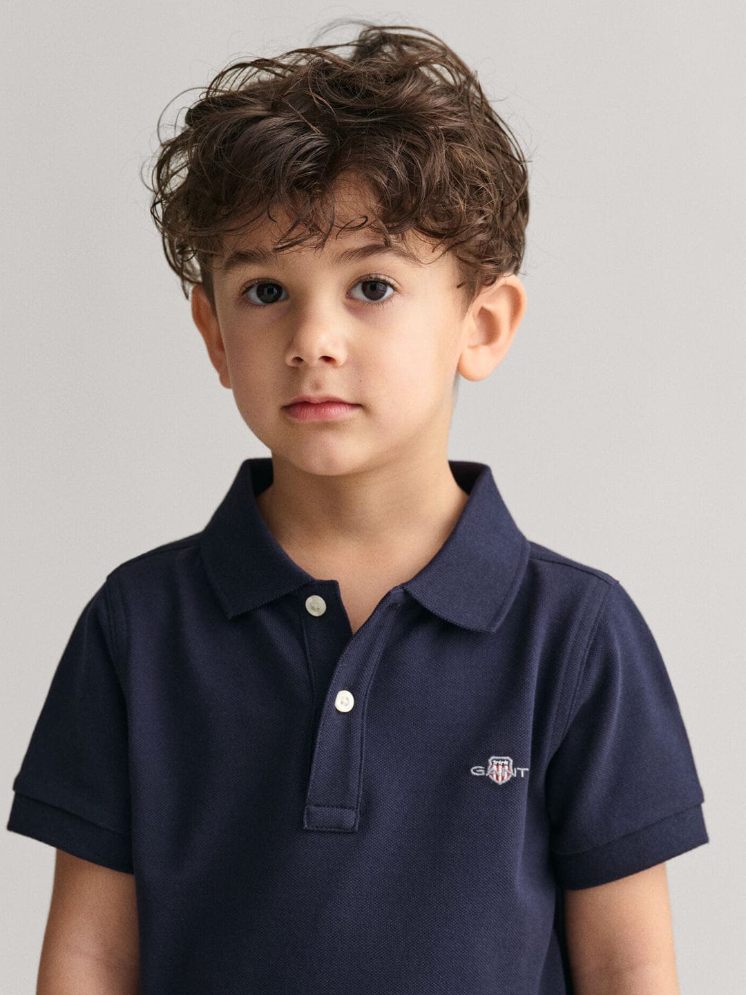 Introducing our Shield T-Shirt for boys, a perfect blend of style and comfort. This blue t-shirt features a regular fit and a solid pattern, making it a versatile addition to any wardrobe. Crafted from pure cotton fabric, it ensures breathability and softness for all-day wear. The short sleeves and polo neck add a touch of classic charm, while the button closure offers ease of wear. Ideal for casual outings or school days, this t-shirt combines practicality with a timeless design, ensuring your child looks sharp and feels great.