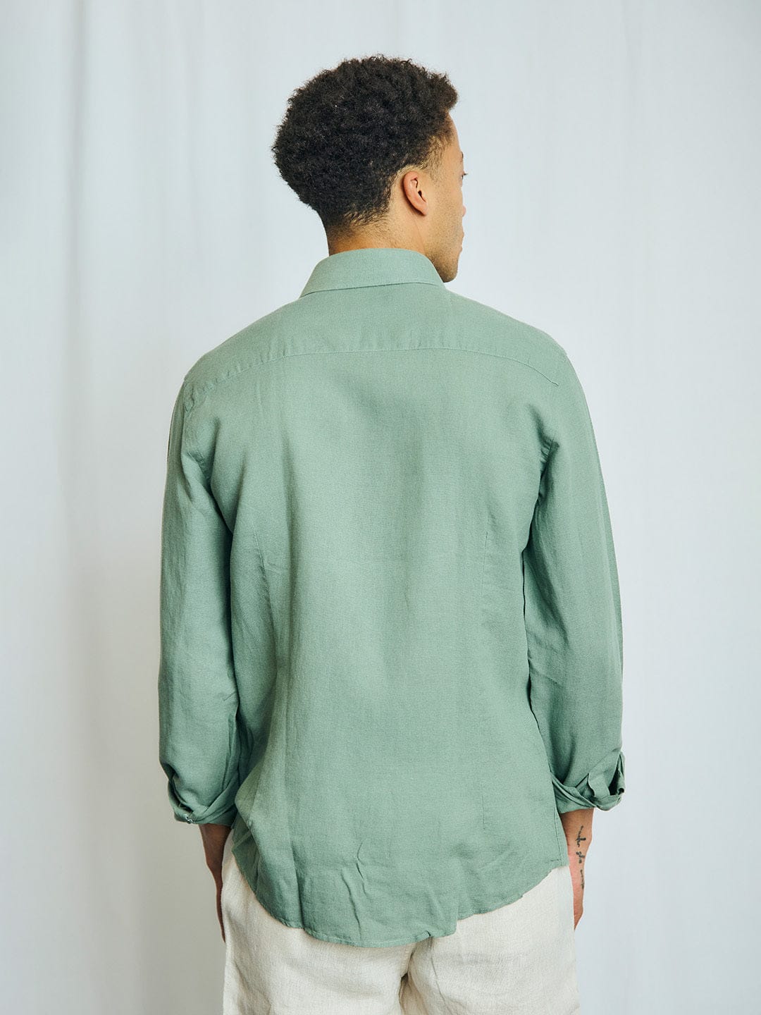 Elevate your wardrobe with our green casual modern-fit shirt, crafted from a premium linen blend. Featuring a solid pattern, full sleeves, and a spread collar, this versatile piece offers comfort and style. The button closure adds a classic touch, making it perfect for any occasion. Ideal for the modern man.