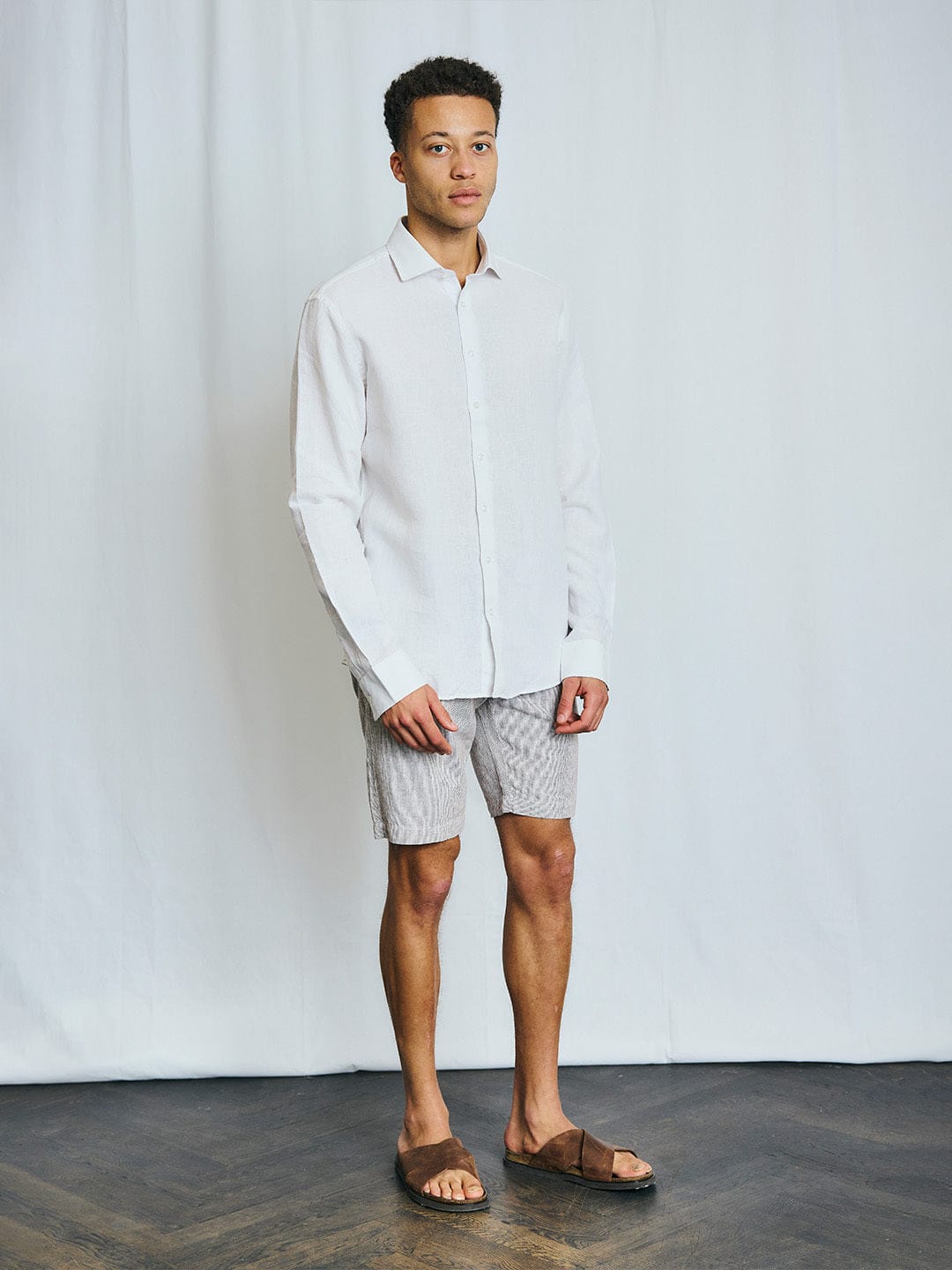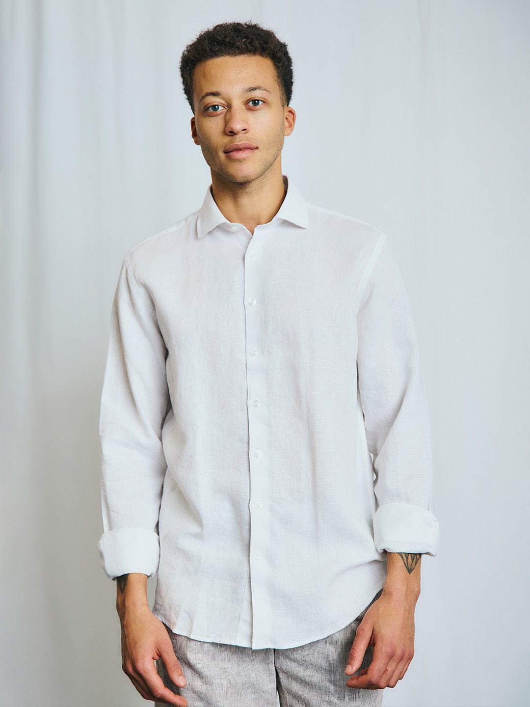 Elevate your wardrobe with this white casual modern-fit shirt, crafted from a premium linen blend. Featuring a solid pattern, full sleeves, and a spread collar, it offers both style and comfort. The button closure adds a classic touch, making it perfect for any occasion. Ideal for the modern man.