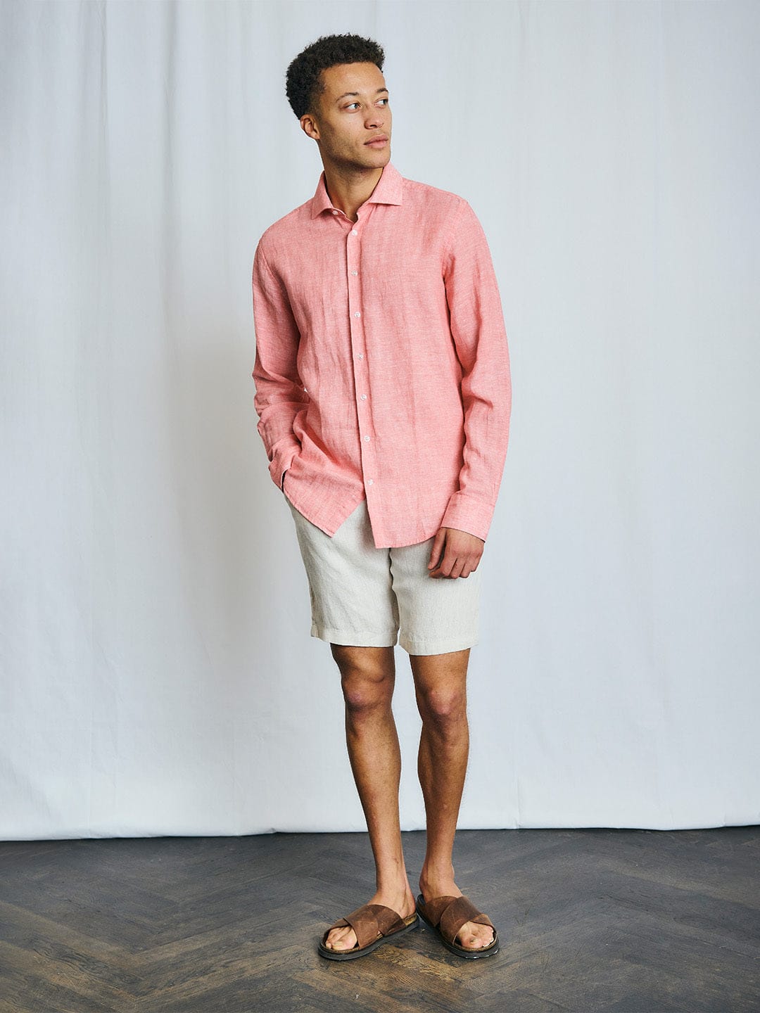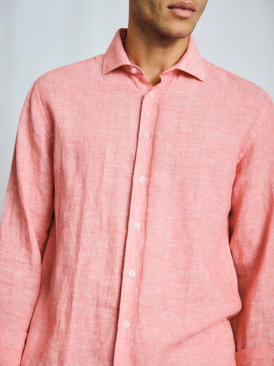 Elevate your wardrobe with this pink shirt, featuring a casual modern fit and solid pattern. Crafted from a premium linen blend, it offers comfort and style. The full sleeves and spread collar add sophistication, while the button closure ensures a polished look. Perfect for any occasion, this shirt is a versatile must-have.