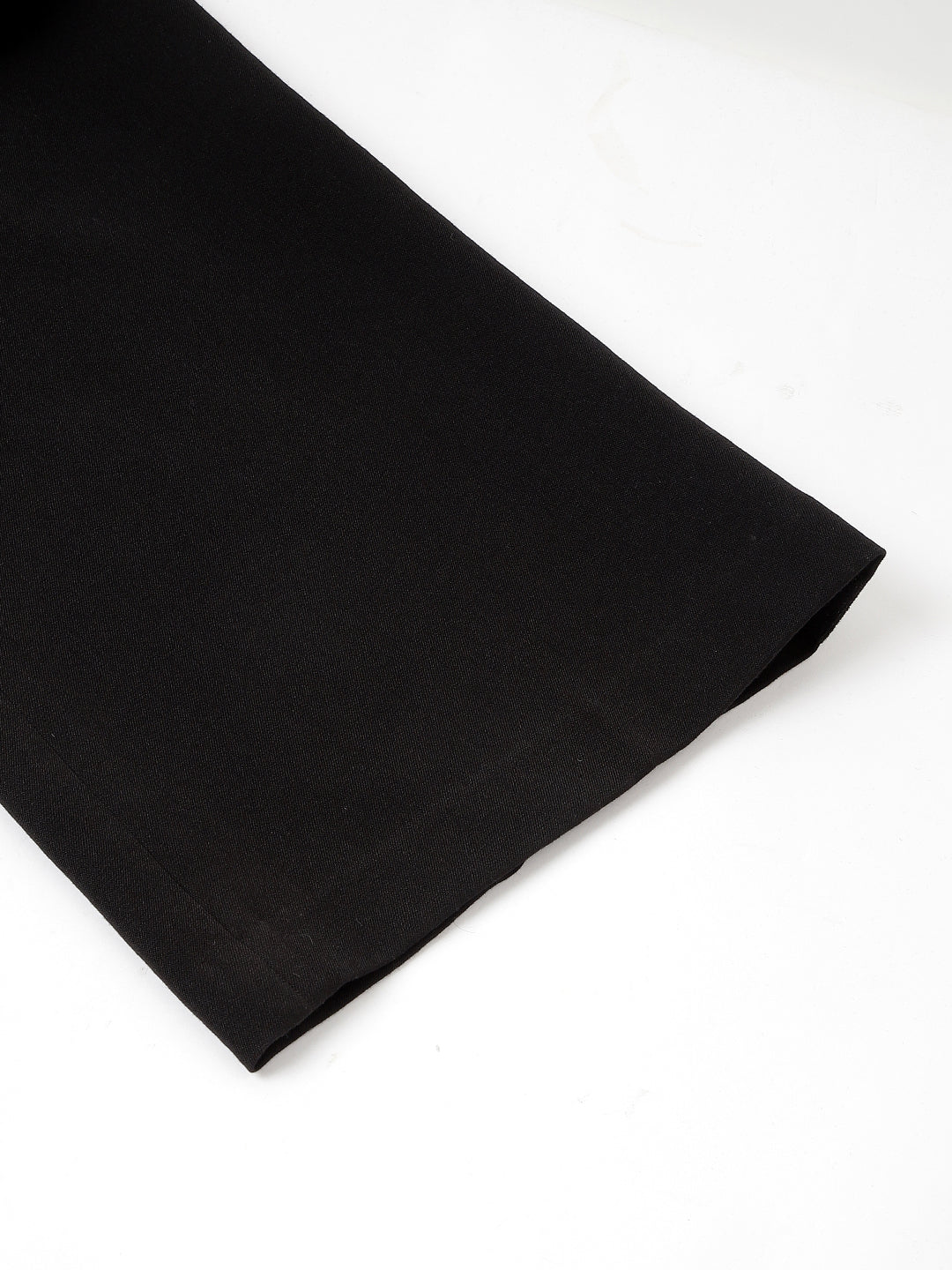 Elevate your style with these sleek black flat-front trousers. Featuring a flattering flared fit, high-rise waist, and zip closure, these trousers are crafted from comfortable polyester fabric. Perfect for any occasion, from work to weekend.