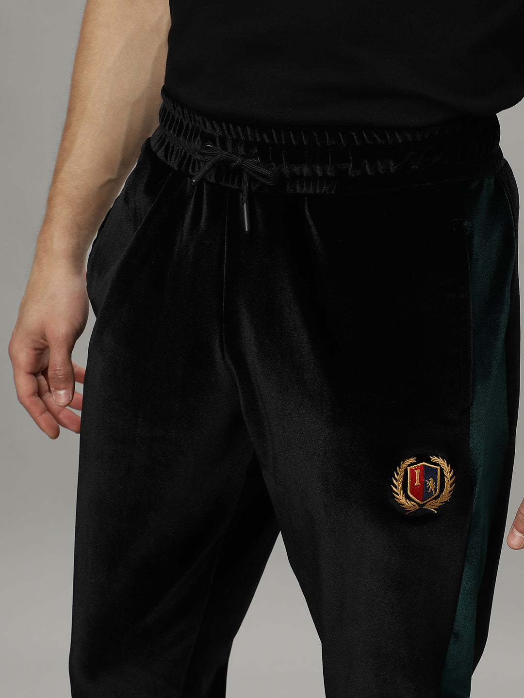 Men Black Solid Regular Fit Mid-Rise Track Pants