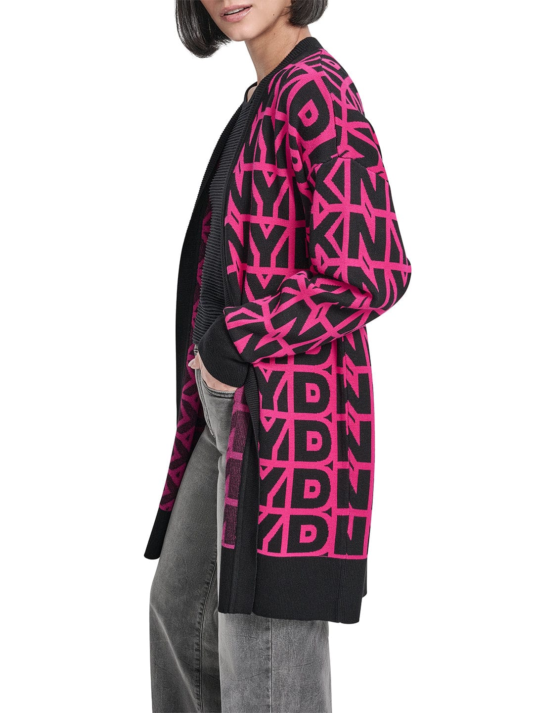 DKNY Women Pink Printed Mandarin Collar Sweater