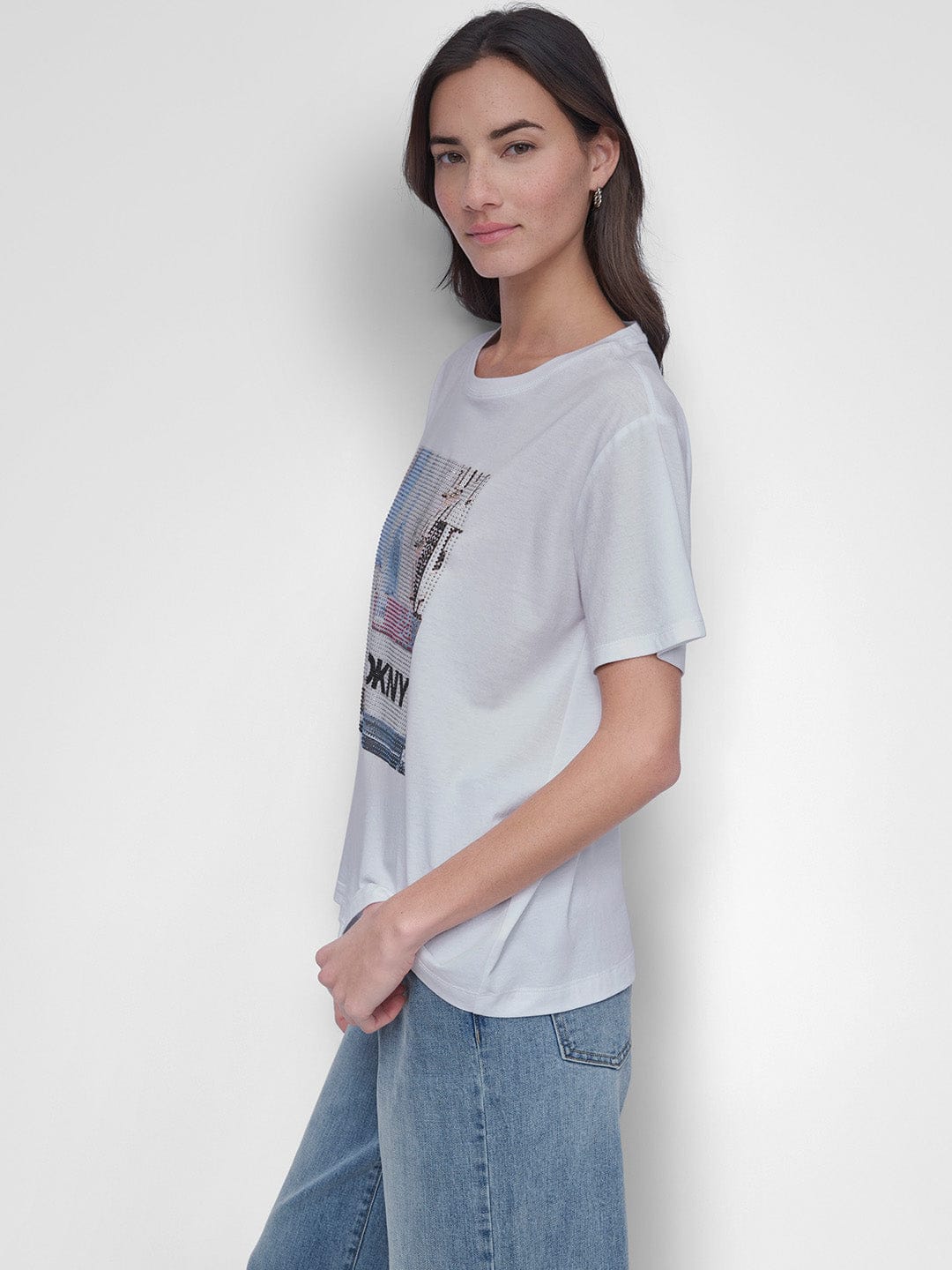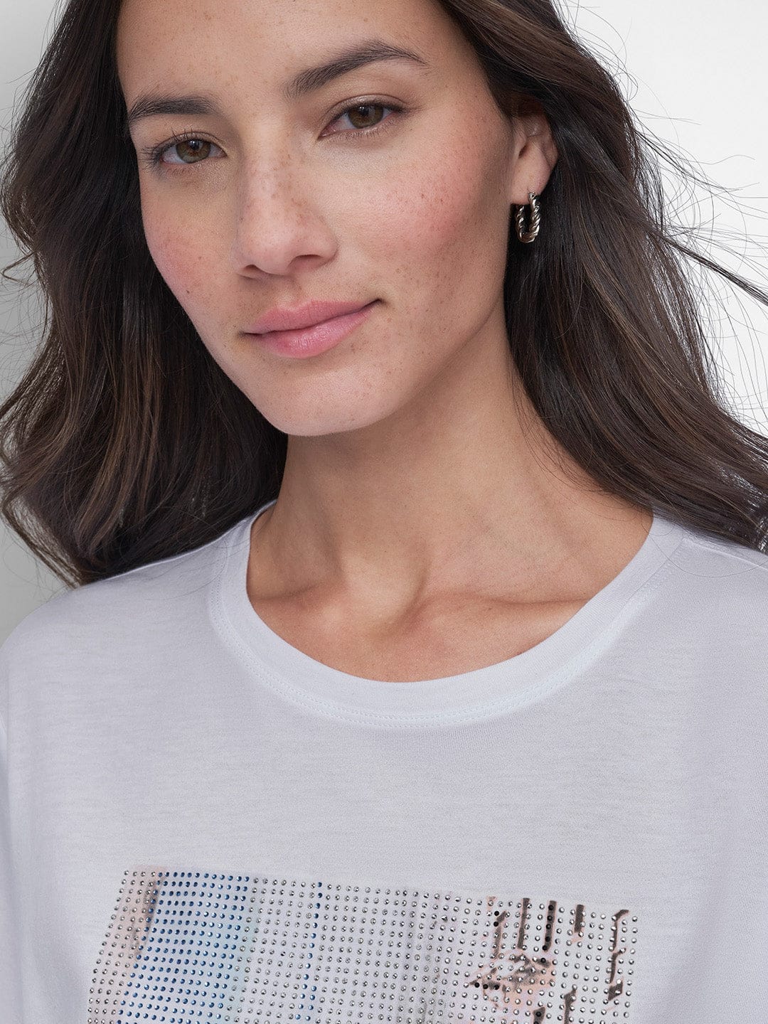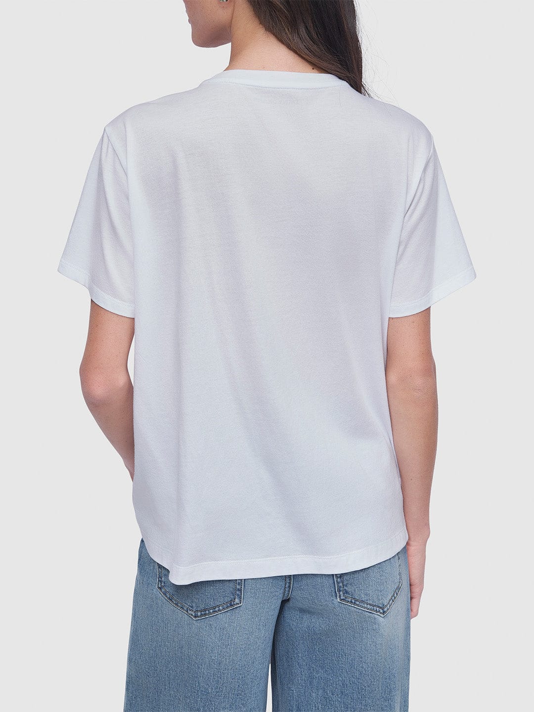 Discover the perfect blend of comfort and style with our women's white boxy fit t-shirt. Crafted from a premium cotton blend fabric, this t-shirt offers a soft and breathable feel, ideal for everyday wear. The short sleeves and round neck design provide a classic look, while the pull-on closure ensures easy wearability. Featuring an eye-catching placement print, this stretchable t-shirt effortlessly combines fashion with function. Whether you're dressing up or down, this versatile piece is a must-have addition to your wardrobe, offering endless styling possibilities for any occasion.