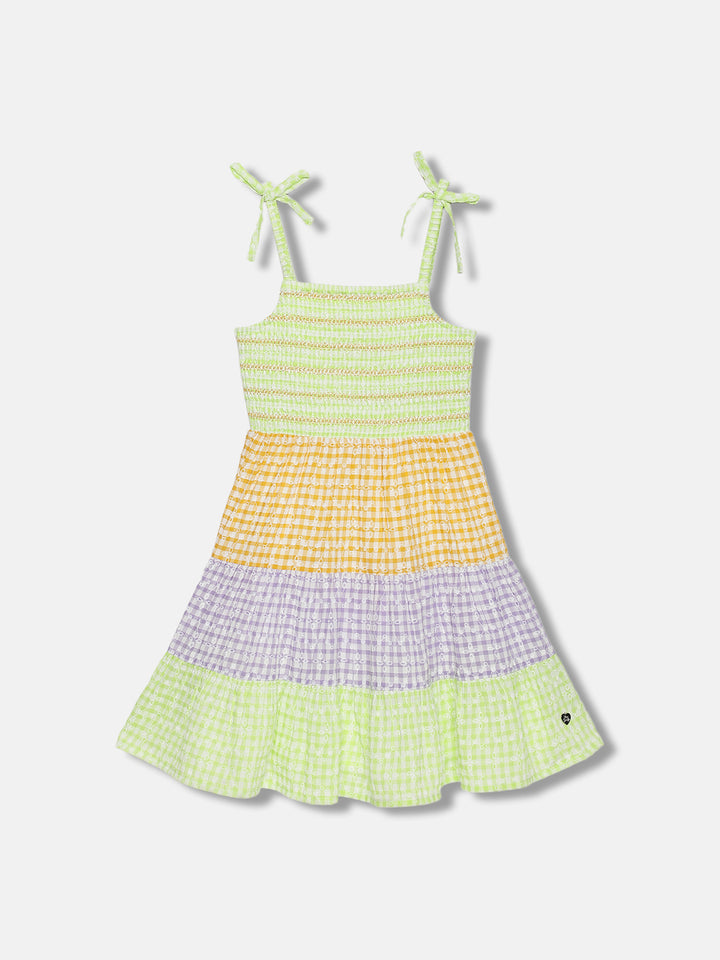 Blue Giraffe Girls Pink Embroidered Round Neck Full Sleeves Fit and Flared Dress