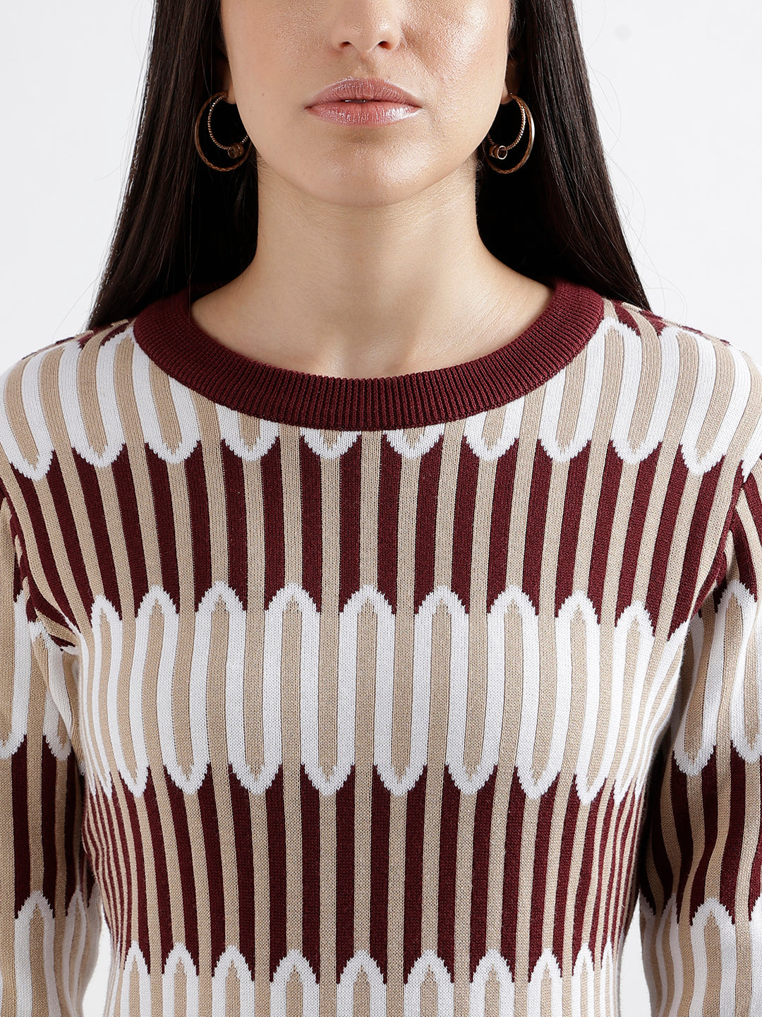 Elle Women Multi-Color Printed Round Neck Full Sleeves Bodycon Dress