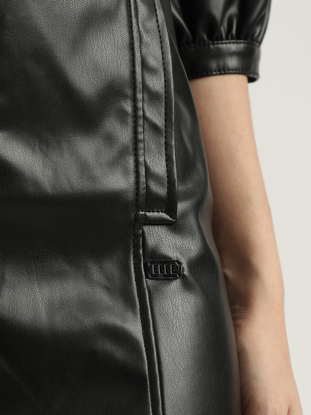 Elle Women Black Solid Spread Collar 3/4 Sleeves Bodycon Dress
