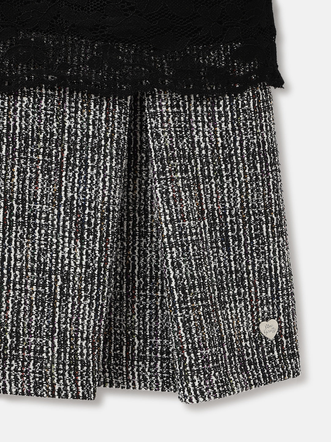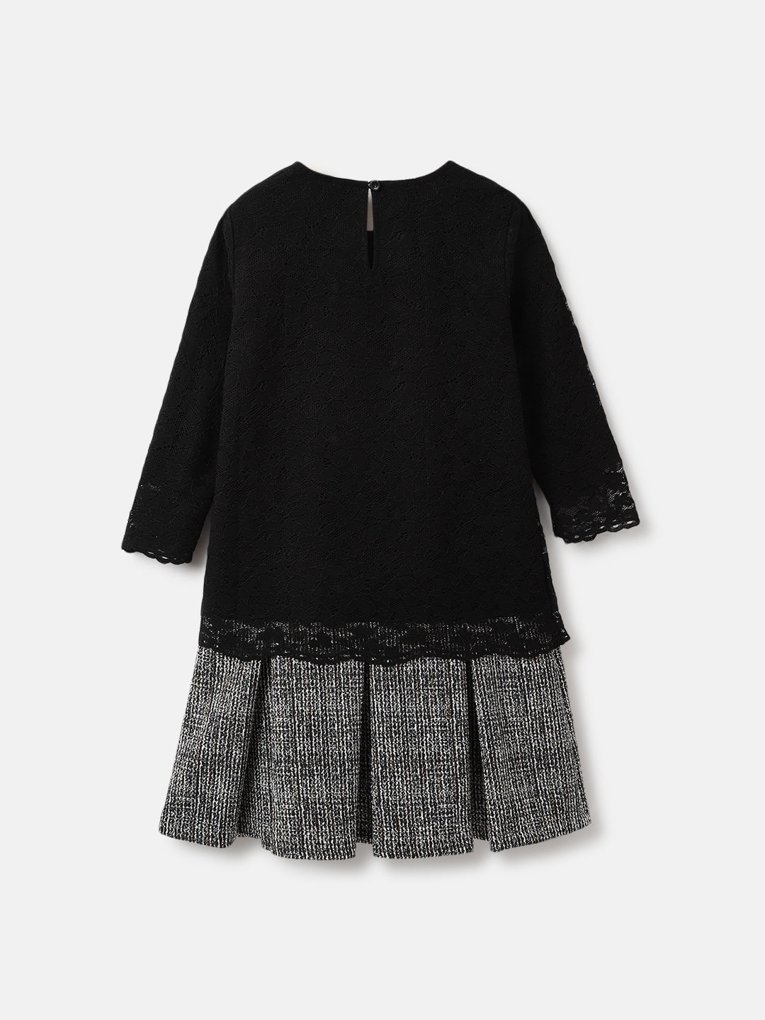 Blue Giraffe Girls Black Self Design Round Neck 3/4th Sleeves A-Line Dress